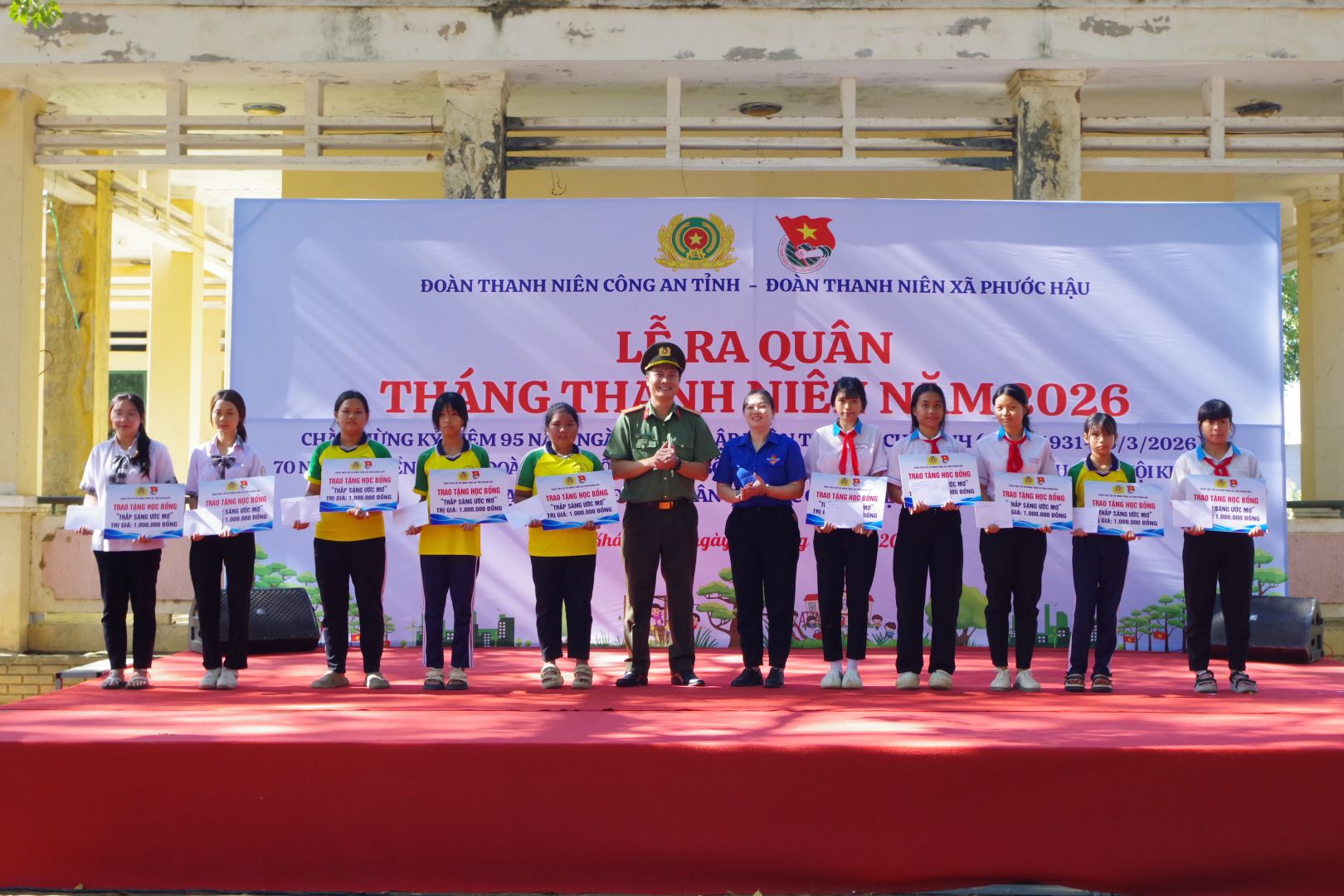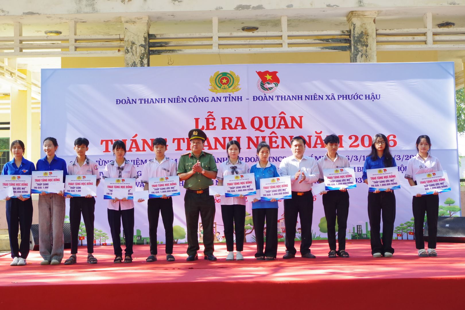 Trong khuôn khổ chương trình, Ban Thanh niên Công an tỉnh đã trao tặng 100 triệu đồng hỗ trợ xây dựng “Ngôi nhà 19/8” cho đoàn viên Công an xã Phước Hậu có hoàn cảnh khó khăn; trao tặng 40 triệu đồng cho Đoàn Thanh niên xã Phước Hậu thực hiện các công trình “Đường cờ Tổ quốc” và “Điểm sinh hoạt vui chơi cho thiếu nhi”; trao 20 suất học bổng “Thắp sáng ước mơ”, tổng trị giá 20 triệu đồng cho học sinh có hoàn cảnh khó khăn trên địa bàn; đồng thời ra mắt các đội hình thanh niên tình nguyện.