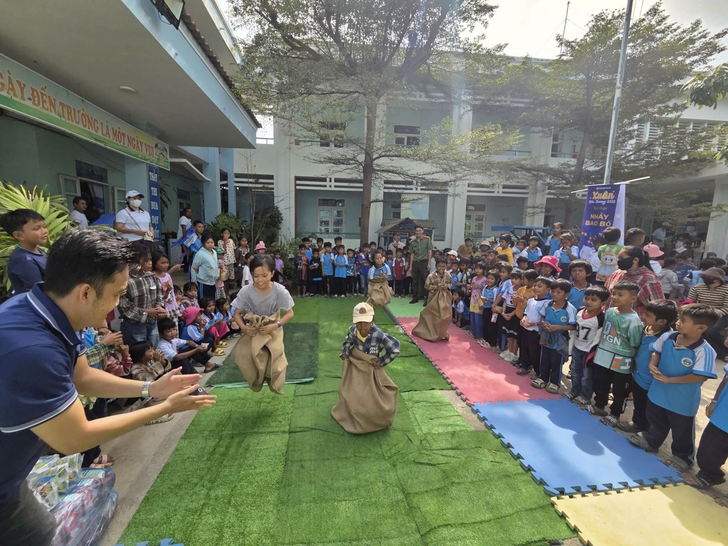 Và đặc biệt để mang lại không khí Tết thực sự, chương trình đã tổ chức các gian hàng trò chơi dân gian truyền thống kết hợp phục vụ đồ ăn cho 463 em học sinh của toàn trường. Đây là không gian để các em được vui chơi, trải nghiệm và tận hưởng trọn vẹn niềm vui tuổi thơ trước thềm năm mới.