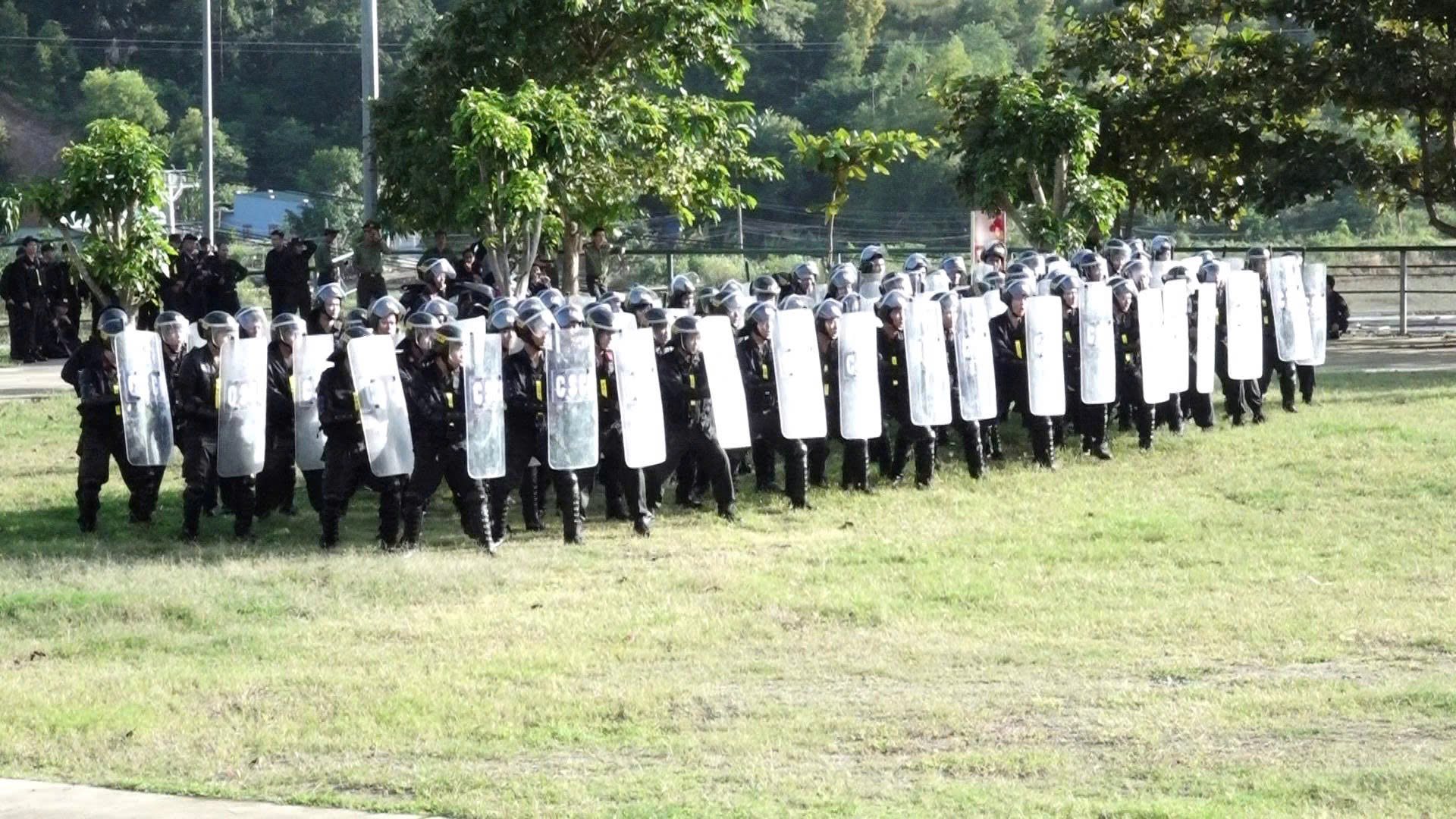 CBCS biểu diễn đội hình chống bạo động.