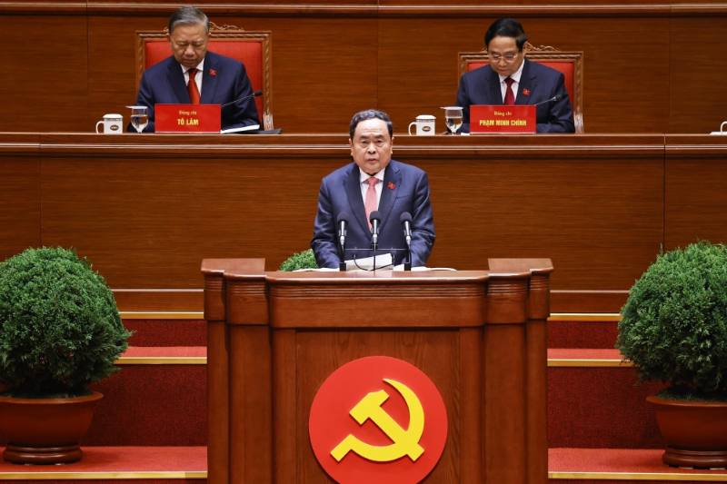 Đồng chí Trần Thanh Mẫn, Ủy viên Bộ Chính trị, Chủ tịch Quốc hội thay mặt Đoàn Chủ tịch báo cáo kết quả bầu Bộ Chính trị, Tổng Bí thư, Ban Bí thư, Ủy ban Kiểm tra Trung ương, Chủ nhiệm Ủy ban Kiểm tra Trung ương.