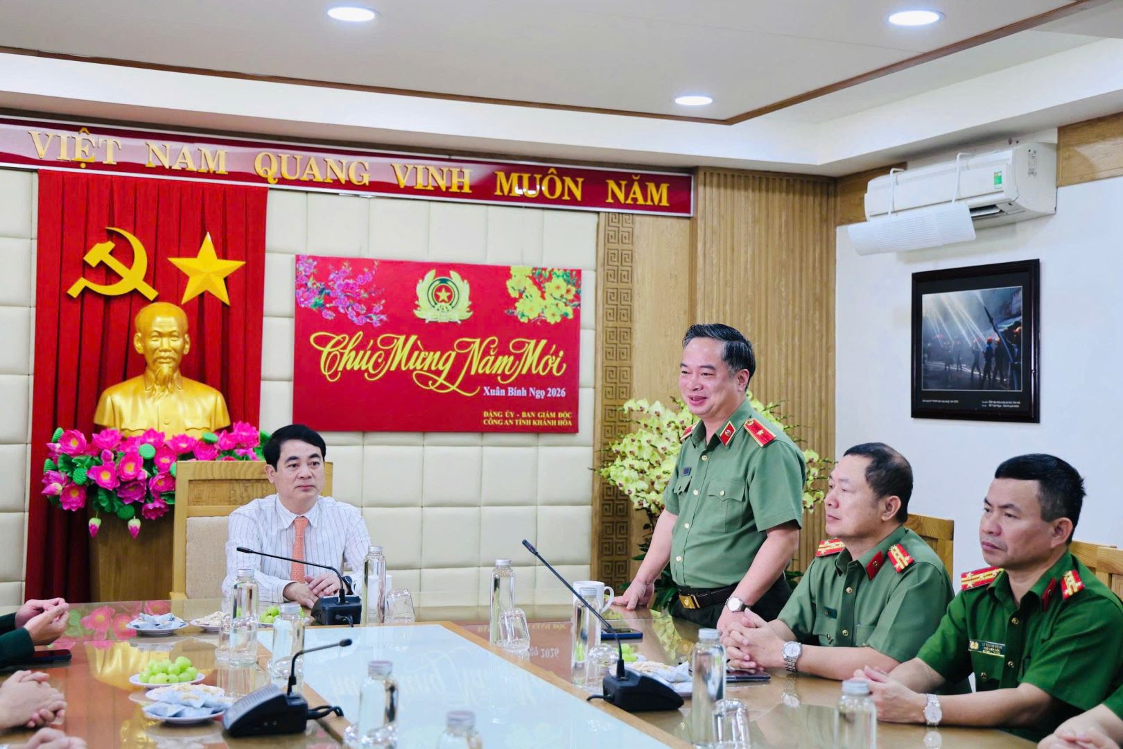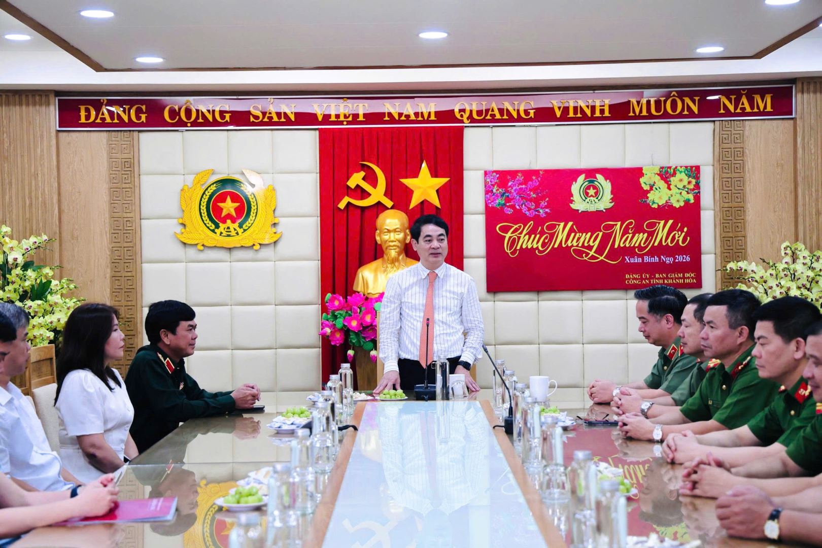 Nhân dịp Tết Nguyên đán Bính Ngọ 2026, sáng 11/02, Đoàn công tác của Tỉnh uỷ Khánh Hoà do đồng chí Nghiêm Xuân Thành - Ủy viên Trung ương Đảng, Bí thư Tỉnh ủy Khánh Hòa làm Trưởng đoàn đã đến thăm, chúc lực lượng Công an Khánh Hoà. Tiếp và làm việc với Đoàn có đồng chí Thiếu tướng Nguyễn Hữu Phước, Ủy viên Ban Thường vụ Tỉnh ủy, Giám đốc Công an tỉnh; các đồng chí trong Ban Giám đốc Công an tỉnh và đại diện lãnh đạo các đơn vị nghiệp vụ.