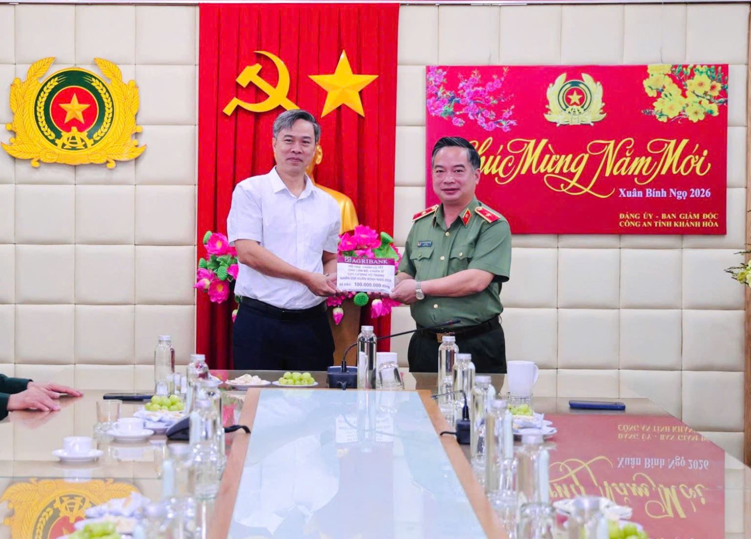Lãnh đạo ngân hàng Agribank tặng quà Tết cho Công an tỉnh Khánh Hòa.