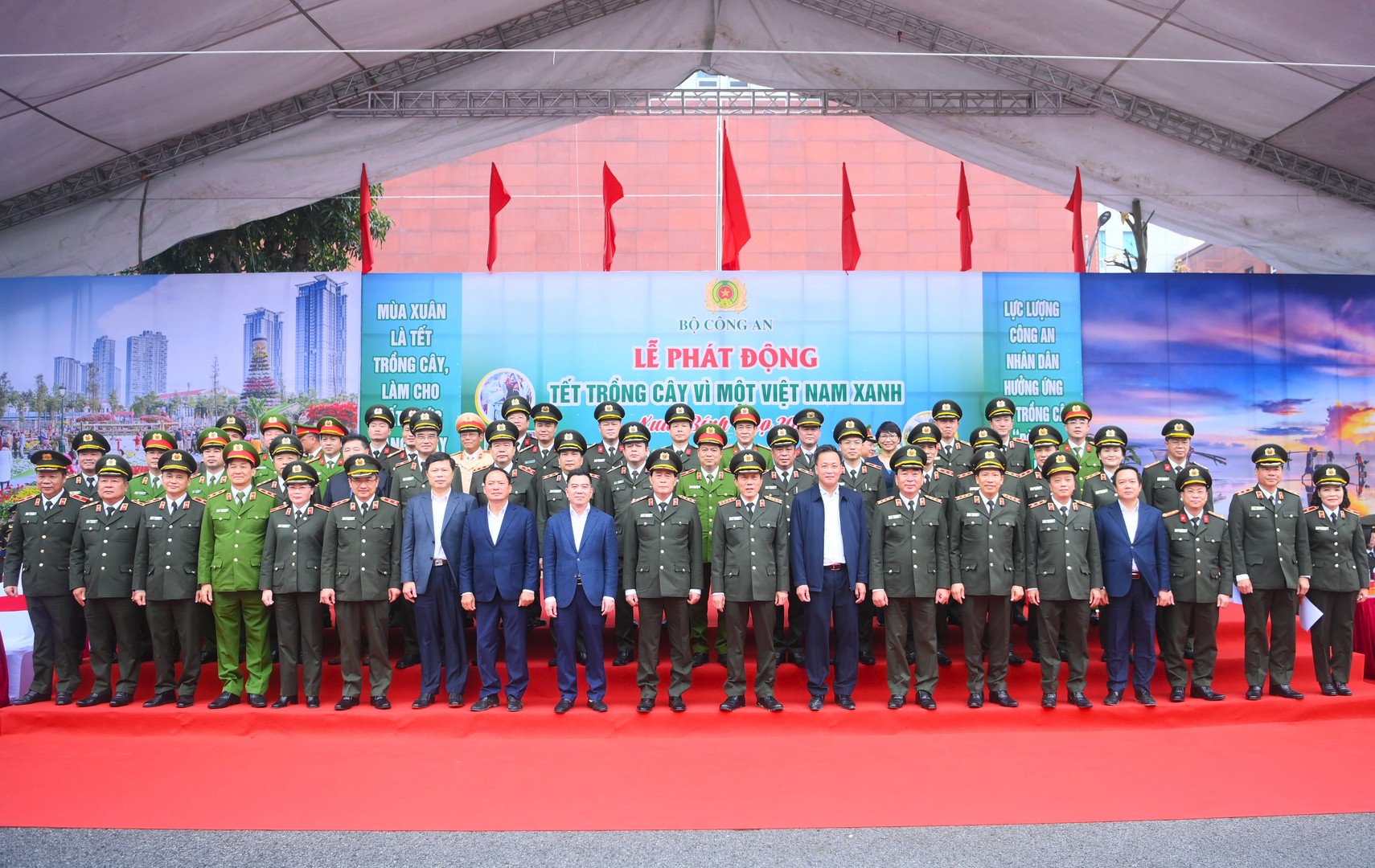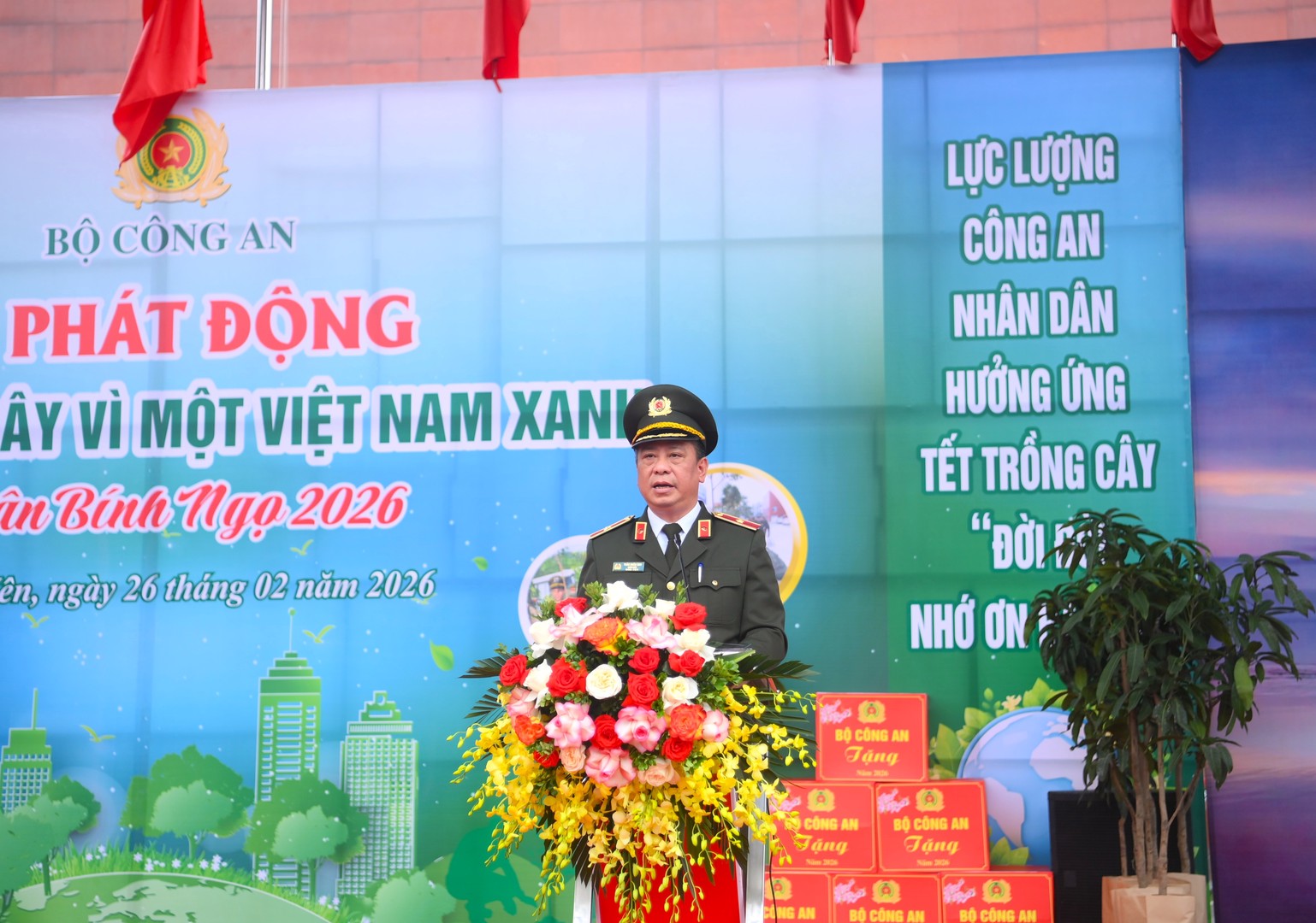 Khắc ghi lời dạy của Bác Hồ kính yêu: “Mùa xuân là Tết trồng cây - Làm cho đất nước càng ngày càng xuân”, thực hiện các chủ trương của Đảng, Nhà nước, chương trình của Chính phủ, giai đoạn 2021 - 2025, toàn lực lượng Công an nhân dân (CAND) đã trồng hơn 12 triệu cây xanh, riêng năm 2025, trồng được hơn 03 triệu cây xanh; mục tiêu năm 2026, Bộ Công an gương mẫu, đi đầu phát động cán bộ, chiến sĩ trong toàn lực lượng trồng và chăm sóc từ 04 triệu cây xanh trở lên, góp phần phủ xanh đất trống, đồi núi trọc, cải thiện môi trường sinh thái, phát triển kinh tế, xã hội, giảm nhẹ thiên tai, giảm phát thải khí nhà kính và ứng phó hiệu quả với biến đổi khí hậu.
