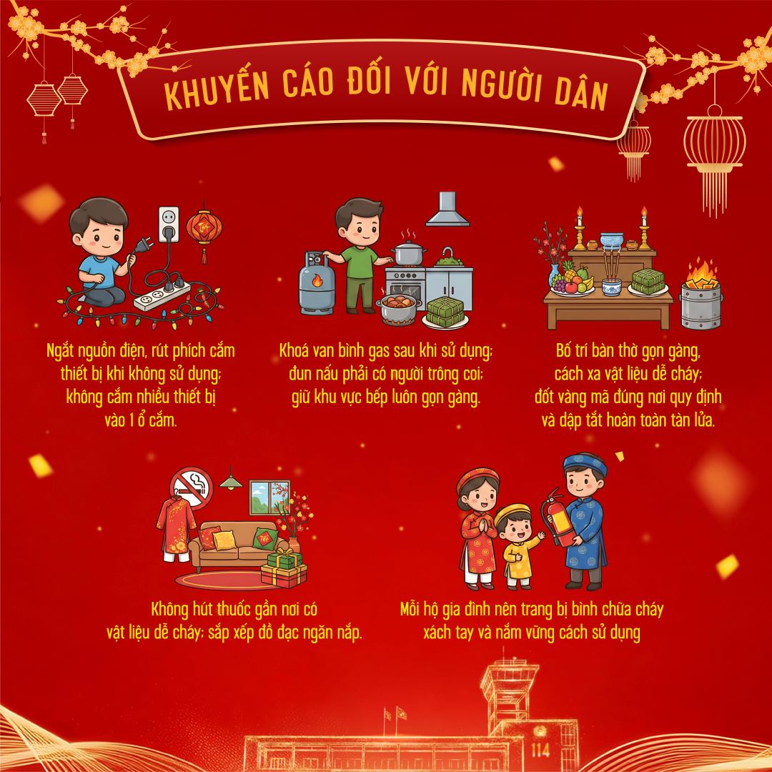 Tết Nguyên đán là thời điểm của niềm vui sum họp, nhưng cũng là lúc "giặc lửa" dễ ghé thăm nhất do thời tiết hanh khô, nhu cầu sử dụng điện, nhiên liệu và việc thắp hương thờ cúng tăng cao. Để những ngày Xuân trọn vẹn niềm vui, không để xảy ra những sự cố đáng tiếc, Đội Chữa cháy và CNCH Khu vực 8 khuyến cáo người dân và cơ sở thực hiện nghiêm túc các biện pháp PCCC sau: