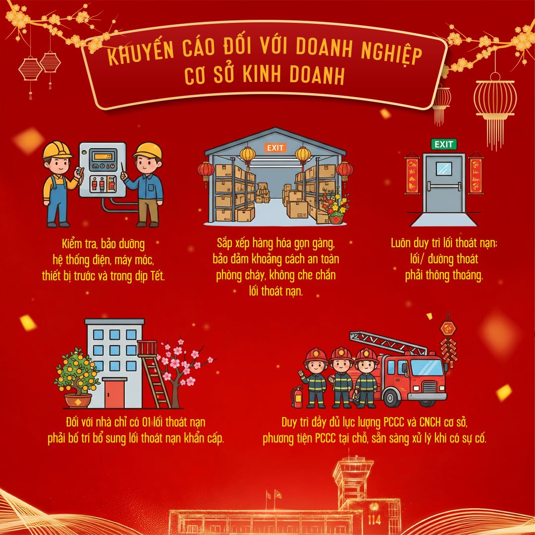 Duy trì lực lượng: Bố trí lực lượng PCCC và CNCH cơ sở và bảo vệ thường trực 24/24 giờ, đặc biệt là vào ban đêm và các ngày nghỉ Tết để phát hiện và xử lý cháy, nổ, sự cố kịp thời.