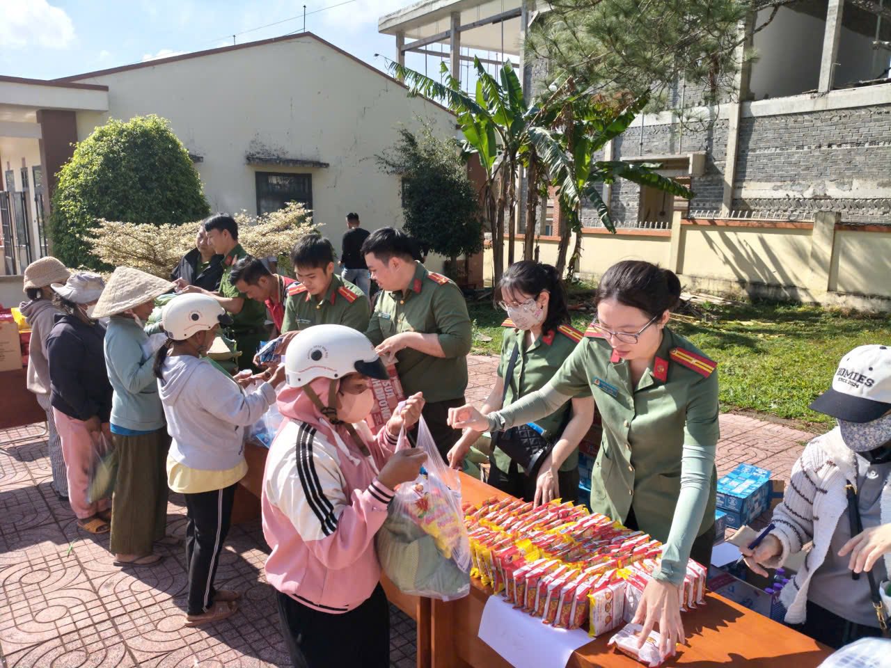 Đoàn đã trao 150 suất quà Tết cho các hộ nghèo, hộ cận nghèo, gia đình chính sách và các trường hợp có hoàn cảnh đặc biệt khó khăn. Mỗi suất quà gồm các nhu yếu phẩm thiết yếu như gạo, bánh, dầu ăn, bột ngọt, dầu gió, với tổng trị giá khoảng 70 triệu đồng. Những phần quà tuy giá trị vật chất không lớn nhưng thể hiện tình cảm, trách nhiệm và sự sẻ chia của lực lượng Công an nhân dân cùng các đơn vị đồng hành đối với cộng đồng.