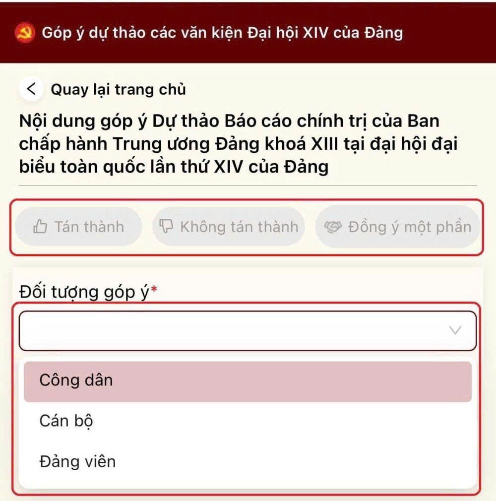 👉 Chọn đối tượng góp ý: Công dân/cán bộ/đảng viên.