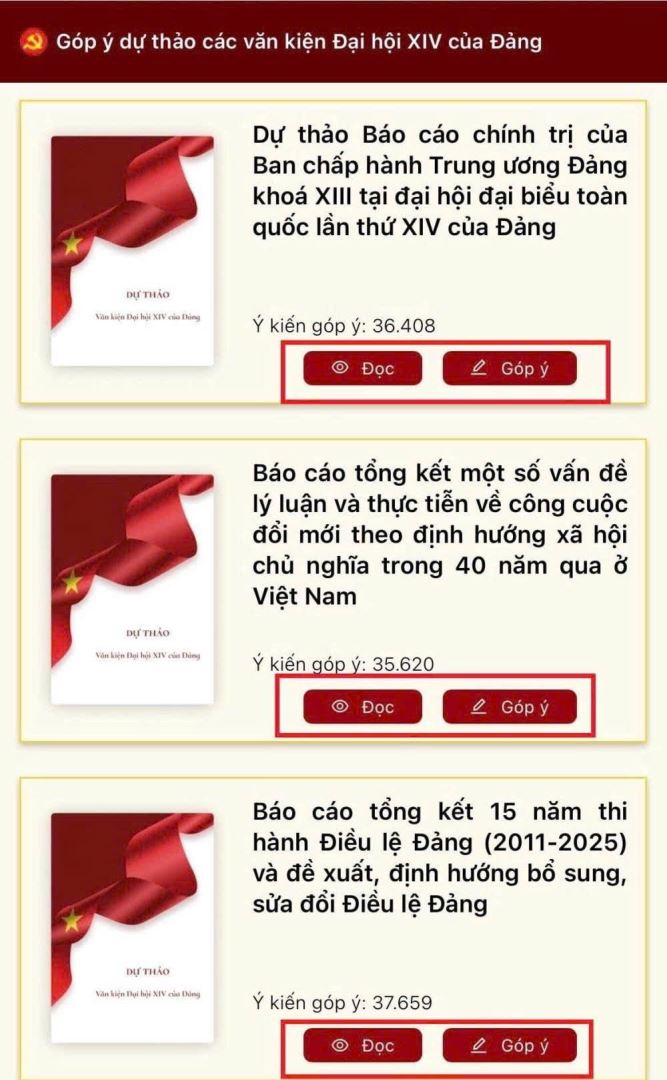 👉 Xem lại góp ý của cá nhân tại dự thảo các Văn kiện Đại hội XIV của Đảng (đã hoàn thành).