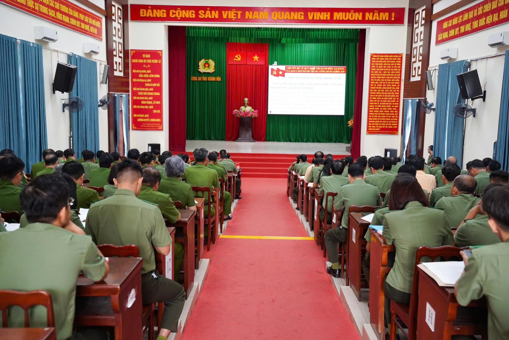 Tại điểm cầu Công an tỉnh Khánh Hoà, Đại tá Nguyễn Quân, Phó Bí thư Đảng uỷ, Phó Giám đốc Công an tỉnh chủ trì hội nghị. Tham dự còn có các đồng chí Phó Giám đốc: Đại tá Lê Quang Dũng, Đại tá Phạm Anh Tuấn, Đại tá Lê Quang Đồng; Đại tá Nguyễn Đình Thuận Hải; cùng đông đảo cán bộ, đảng viên trong Công an tỉnh.