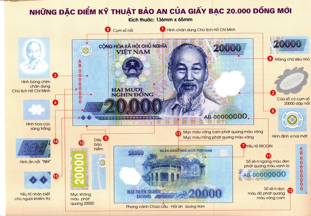 Những đặc điểm kỹ thuật bảo an tờ tiền 20.000 VND