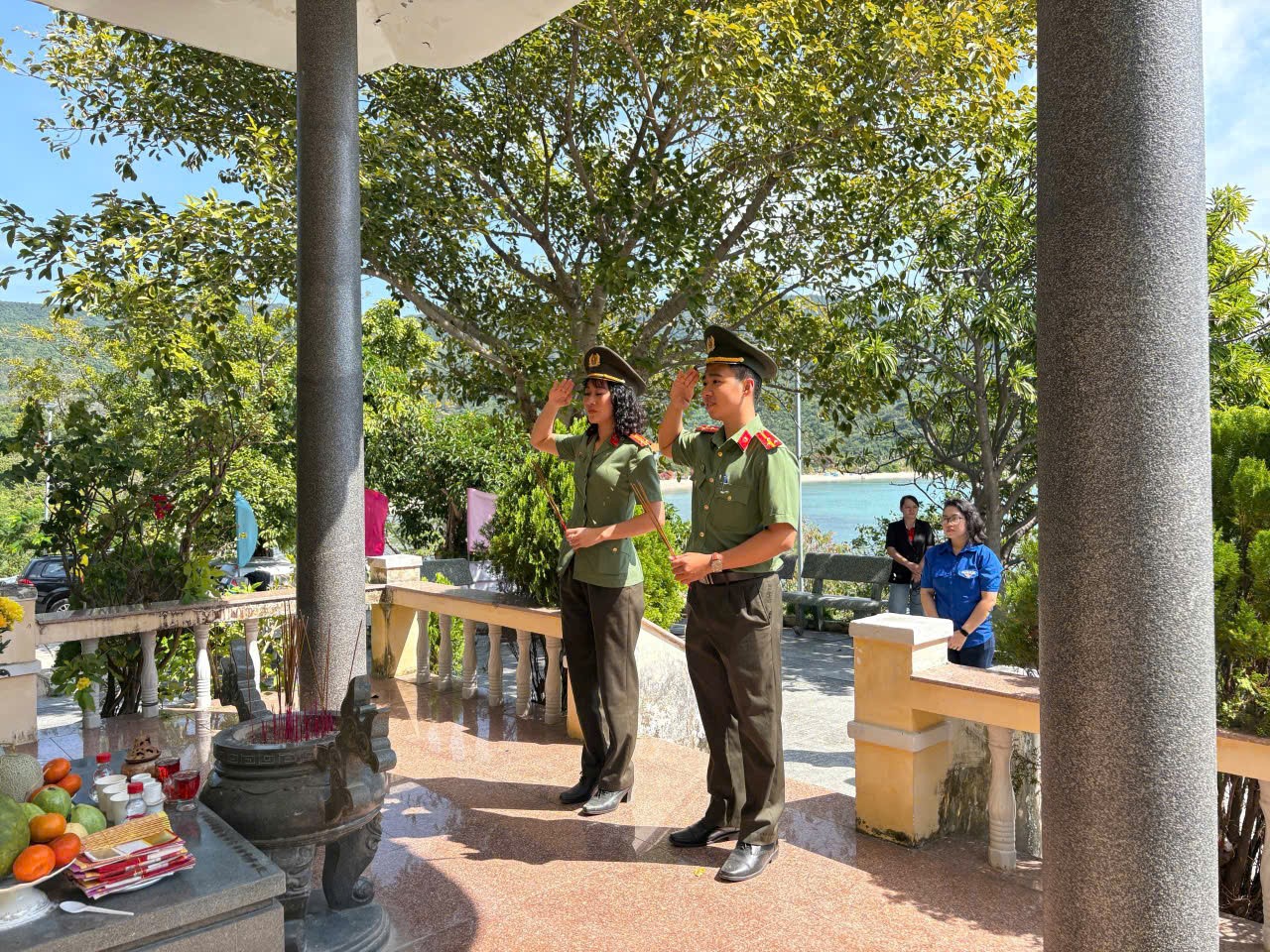 Đoàn đã đến địa chỉ đỏ Khu lưu niệm di tích Tàu không số C235 tại phường Đông Ninh Hòa. Trong không khí trang nghiêm, đoàn đã thành kính dâng hương, dâng hoa tưởng niệm các anh hùng liệt sĩ đã hy sinh trên con tàu huyền thoại C235. Những nén hương trầm là tấm lòng biết ơn vô hạn của thế hệ hôm nay đối với sự hy sinh anh dũng của các chiến sĩ, đặc biệt là Anh hùng Lực lượng vũ trang nhân dân, Liệt sĩ Nguyễn Phan Vinh và đồng đội.