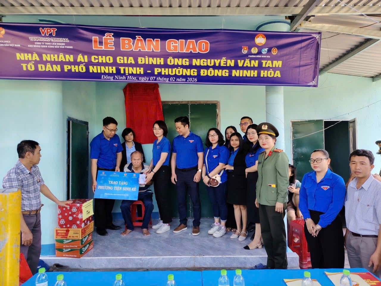Tổ chức Lễ bàn giao nhà nhân ái và trao tặng phương tiện sinh kế trị giá 5.000.000 cho gia đình ông Nguyễn Văn Tam tại tổ dân phố Ninh Tịnh, phường Đông Ninh Hòa