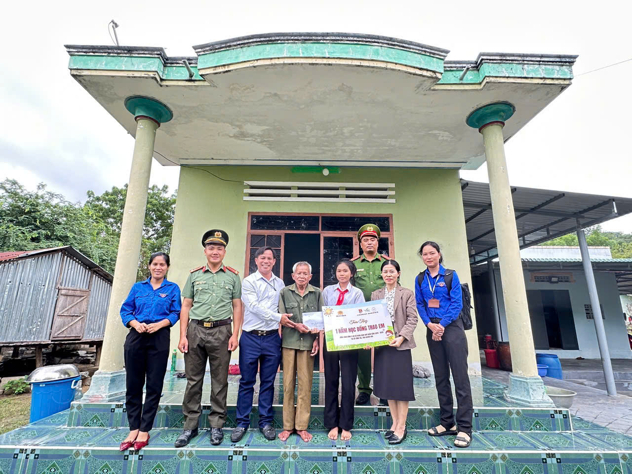 CSCS Công an xã và cán bộ, giáo viên nhà trưuòng tặng quà, hỗ trợ chi phí học tập cho em Chamaléa Thị Hà Xuyên học sinh lớp 9 Trường TH-THCS Phước Chiến mồ côi cha, thuộc diện hộ nghèo