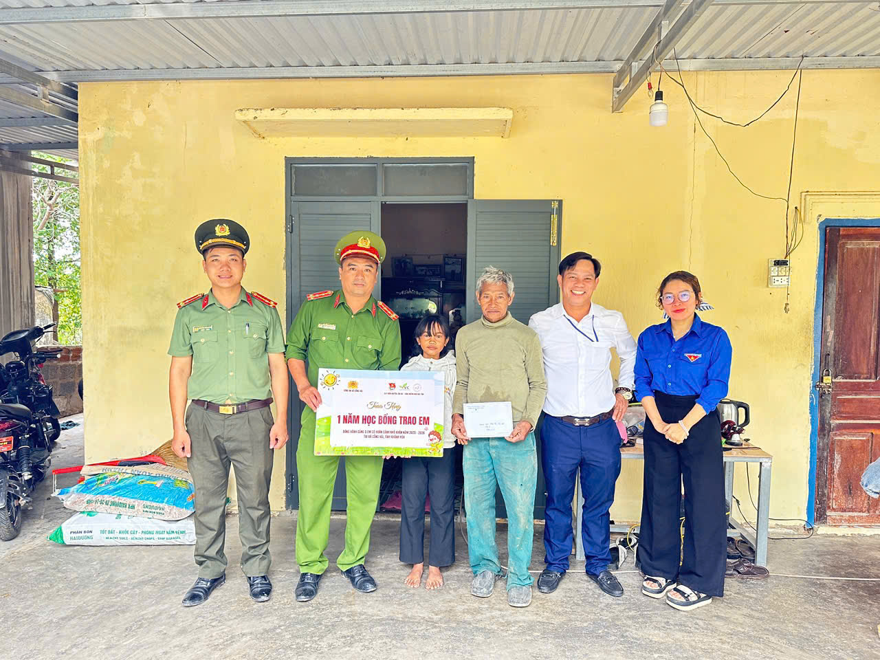Thực hiện Kế hoạch kết nghĩa giữa Chi đoàn Công an xã Công Hải và Chi đoàn Trường TH-THCS Phước Chiến, đồng thời phát huy hiệu quả mô hình “Nâng bước em tới trường". Sáng ngày 13/4/2026, Chi đoàn Công an xã Công Hải phối hợp cùng Chi đoàn Trường TH & THCS Phước Chiến tổ chức đến nhà thăm hỏi, động viên và tặng quà, hỗ trợ kinh phí học tập 300.000đ/suất cho 05 em học sinh Trường TH & THCS Phước Chiến có hoàn cảnh đặc biệt khó khăn, vươn lên trong học tập do Chi đoàn Công an xã nhận đỡ đầu.