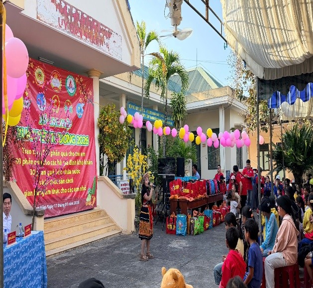 Tại chương trình, Ban Tổ chức đã tổ chức Ngày hội thiếu nhi với nhiều hoạt động phong phú như các gian hàng trò chơi dân gian, gian hàng ẩm thực miễn phí, giao lưu văn nghệ… tạo không khí vui tươi, phấn khởi cho hàng trăm em thiếu nhi và bà con Nhân dân địa phương. Đặc biệt, chương trình đã trao 500 phần quà cho các em nhỏ tham gia hoạt động vui chơi; 100 phần quà Tết cho các hộ gia đình nghèo, cận nghèo; cùng 30 phần quà đặc biệt là 30 bồn chứa nước hỗ trợ các hộ gia đình có hoàn cảnh đặc biệt khó khăn, góp phần giúp bà con đón Tết đầm ấm, đủ đầy hơn.
