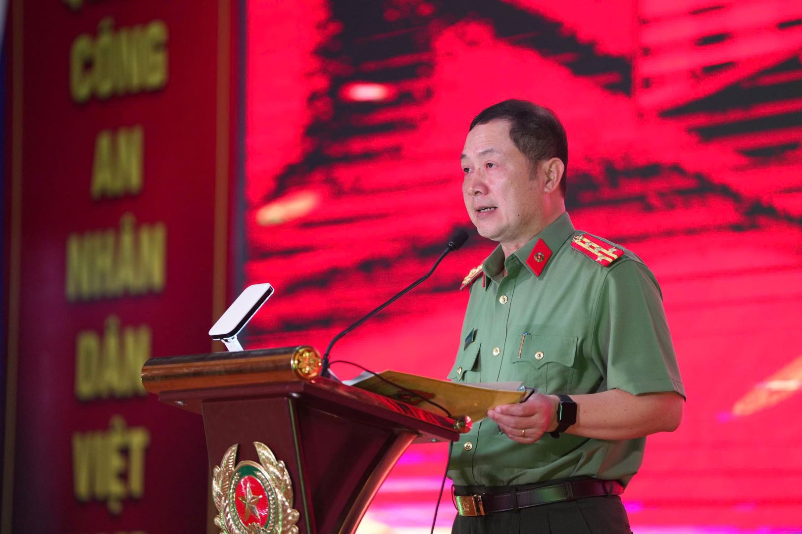 Đại tá Nguyễn Quân, Phó Bí thư Đảng ủy, Phó Giám đốc Công an tỉnh phát biểu khai mạc chương trình.