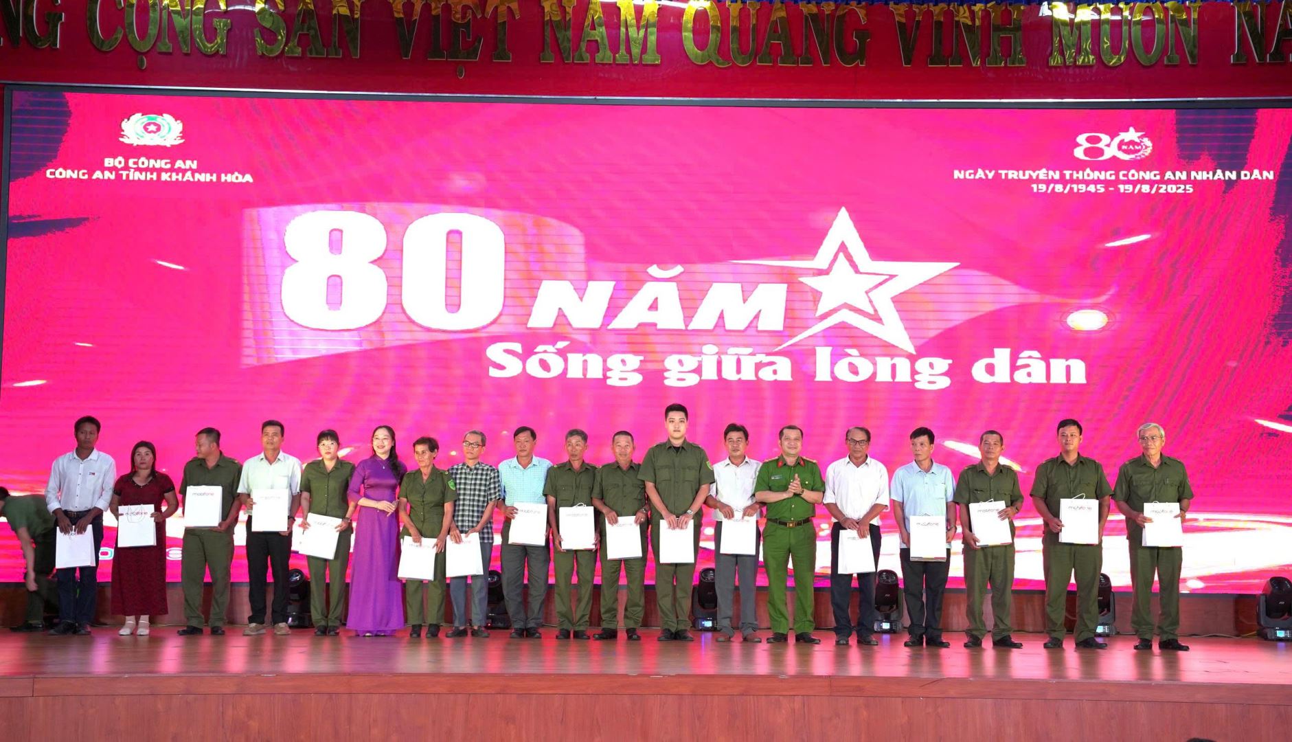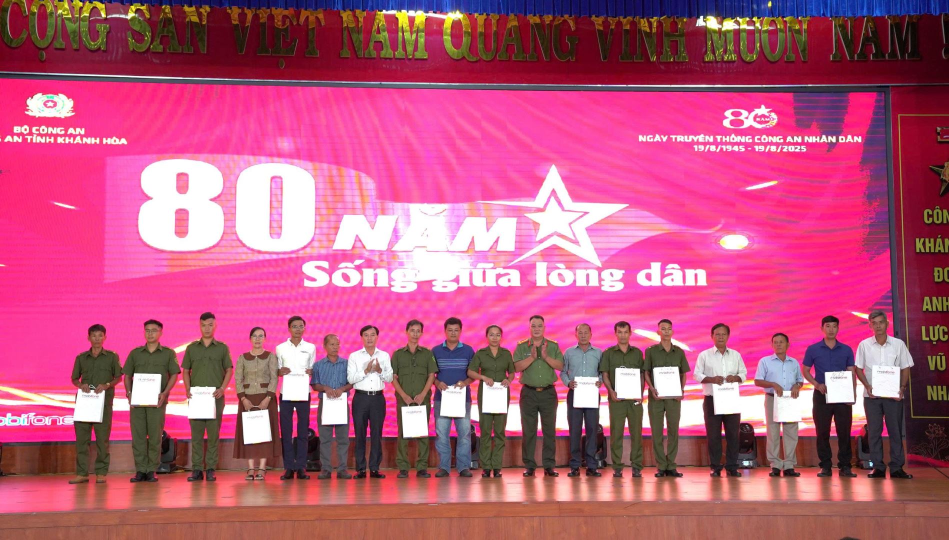 Dịp này, Công an tỉnh phối hợp với Mobifone Khánh Hòa trao tặng 80 suất quà cho các điển hình tiên tiến trong phong trào TDBVANTQ và thân nhân các gia đình chính sách tiêu biểu trong lực lượng Công an Khánh Hòa.