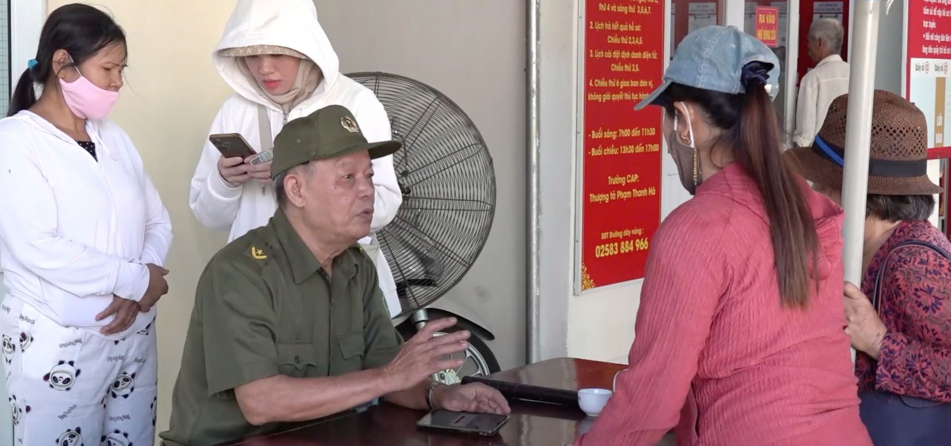 Ông Lê Hữu Ngọc hỗ trợ người dân đến làm thủ tục tại Công an phường Nam Nha Trang..