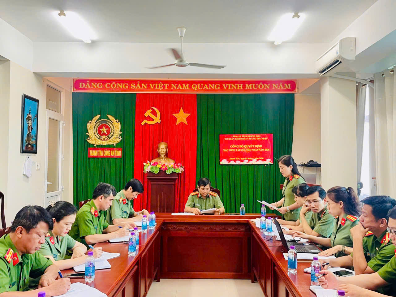 Chiều ngày 03/3/2026, Cơ quan kiểm soát tài sản thu nhập Công an tỉnh đã tiến hành công bố Quyết định số 258/QĐ-TT ngày 02/3/2026 về xác minh tài sản, thu nhập năm 2026 đối với 11 đồng chí được xác minh tài sản, thu nhập năm 2026. Đồng chí Thượng tá Nguyễn Văn An - Thủ trưởng Cơ quan kiểm soát tài sản, thu nhập Công an tỉnh - Chánh Thanh tra - Chủ trì Hội nghị. Buổi Công bố có sự tham dự của Thủ trưởng Cơ quan Ủy ban kiểm tra Công an tỉnh và đại diện lãnh đạo các đơn vị có cán bộ được xác minh tài sản, thu nhập, gồm: Trại Tạm Giam Số 2 Công an tỉnh; Công an các phường: Bắc Nha Trang, Ninh Hòa, Cam Ranh; Công an các xã: Cam Lâm, Diên Lạc, Phước Dinh.