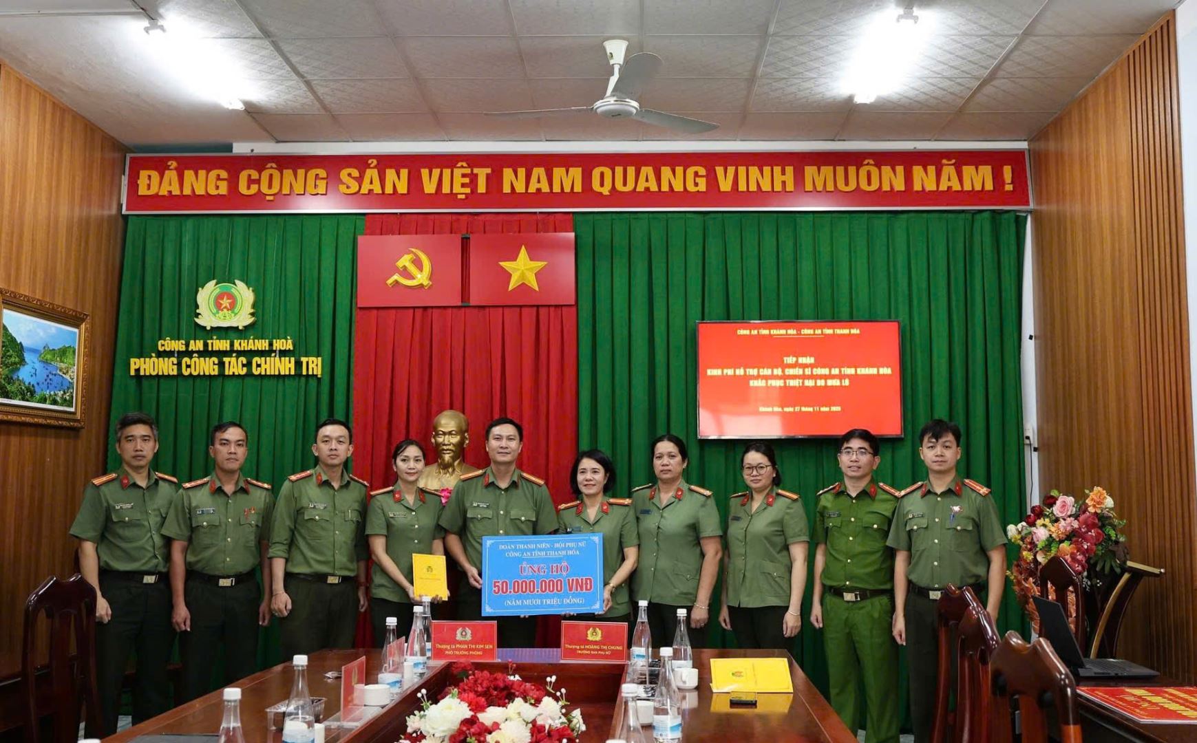 Công an tỉnh Thanh Hóa hỗ trợ Công an tỉnh Khánh Hòa 100 triệu đồng và 50 triệu đồng cho Ban Thanh niên, Ban Phụ nữ Công an tỉnh.