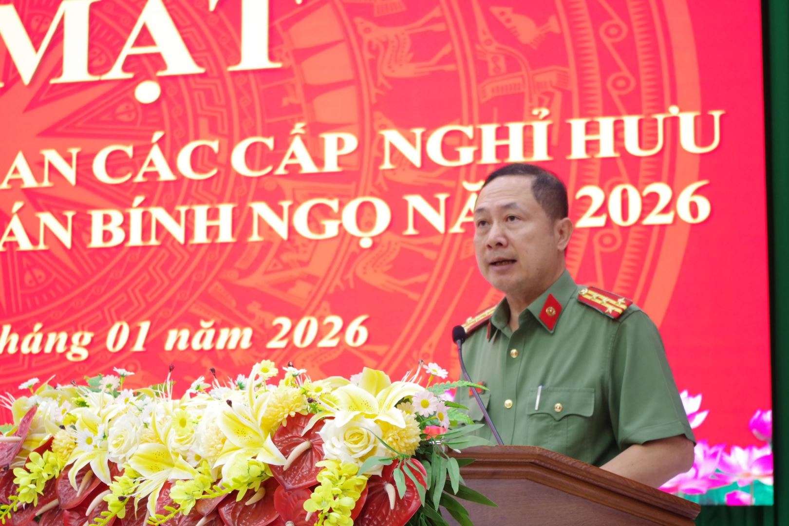 Phát biểu tại buổi gặp mặt, thay mặt Đảng ủy, lãnh đạo Công an tỉnh, Đại tá Nguyễn Quân đã thông tin khái quát tình hình kinh tế – xã hội của địa phương; kết quả công tác bảo đảm an ninh trật tự, xây dựng lực lượng, phong trào thi đua “Vì an ninh Tổ quốc” năm 2025 cùng những nhiệm vụ, giải pháp trọng tâm năm 2026.