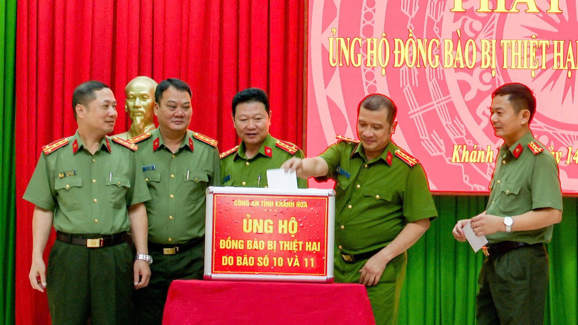 Hưởng ứng lời kêu gọi của Ủy ban Mặt trận Tổ quốc Việt Nam tỉnh Khánh Hoà, sáng ngày 14/10, Công an tỉnh Khánh Hoà tổ chức phát động CBCS quyên góp ủng hộ nhân dân bị thiệt hại do bão, hoàn lưu bão số 10 và số 11 gây ra.