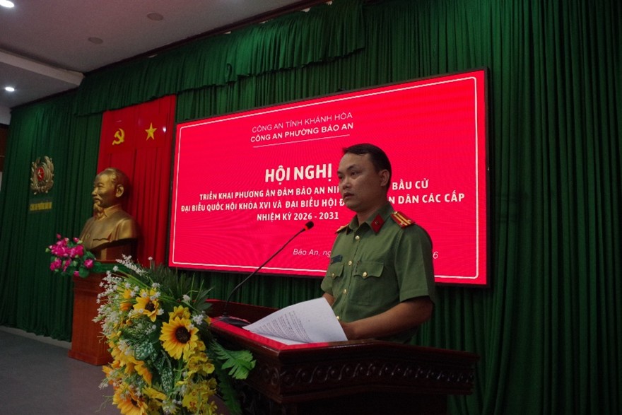 Sáng ngày 14/3/2026, Công an phường Bảo An tổ chức Hội nghị triển khai phương án đảm bảo an ninh, trật tự phục vụ bầu cử đại biểu Quốc hội khóa XVI và đại biểu Hội đồng nhân dân các cấp nhiệm kỳ 2026 – 2031 do đồng chí Trung tá Nguyễn Ngọc Tú - Phó Trưởng Công an phường chủ trì. Tham dự hội nghị có Chỉ huy, cán bộ chiến sĩ Công an phường Bảo An; Ban Chỉ huy Quân sự phường; lực lượng Công an tỉnh hỗ trợ công an phường; cùng lực lượng an ninh cơ sở và dân quân tự vệ.