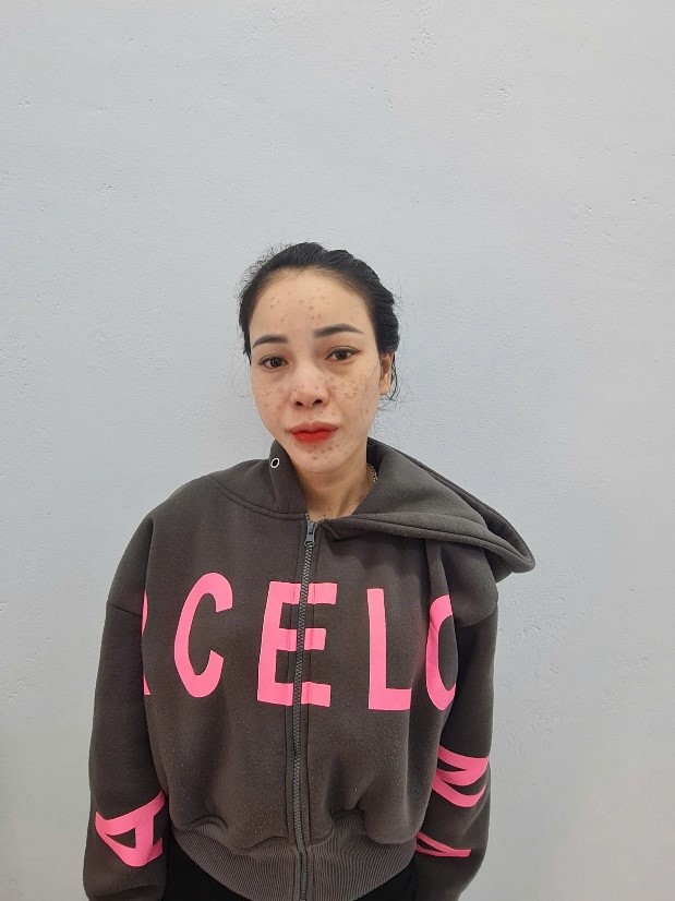 | Đối tượng Lâm Thị Duyên tại cơ quan Công an |