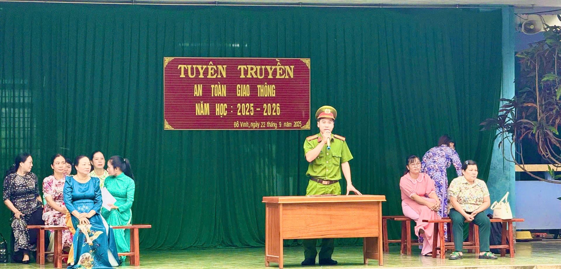 Sáng ngày 22/9/2025, tại Trường Tiểu học Nhơn Sơn, Công an phường Đô Vinh đã phối hợp cùng Ban Giám hiệu nhà trường tổ chức buổi tuyên truyền về an toàn giao thông cho hơn 200 em học sinh. Đây là hoạt động hết sức thiết thực và có ý nghĩa, góp phần nâng cao nhận thức, xây dựng văn hóa giao thông trong lứa tuổi học đường.
