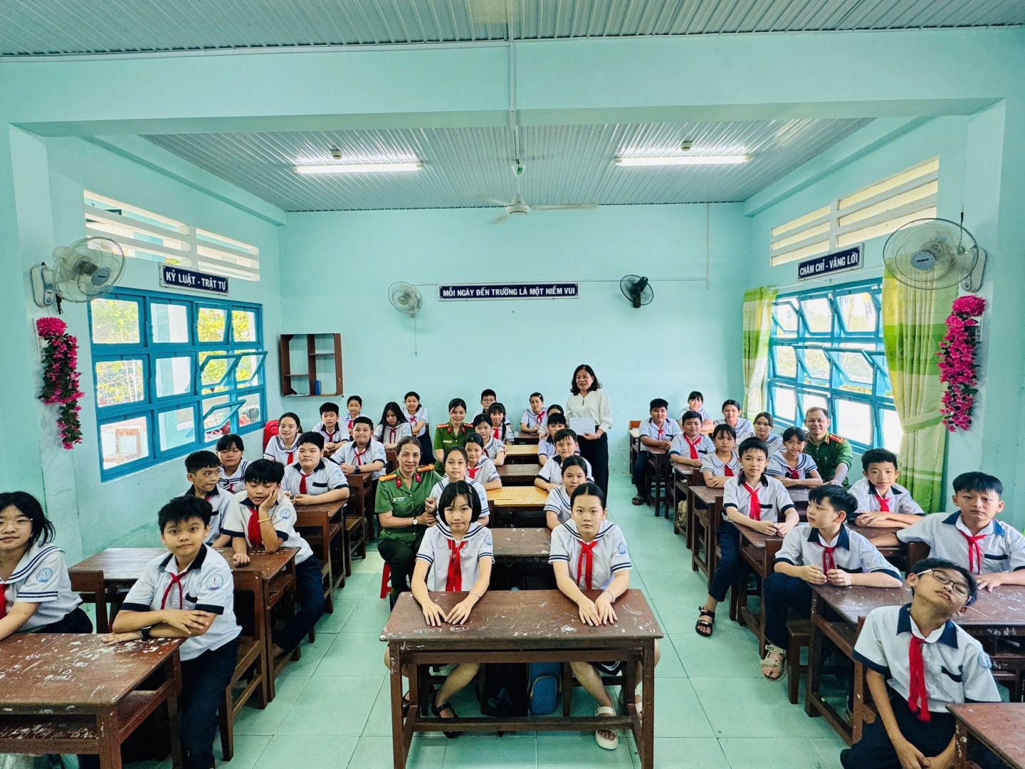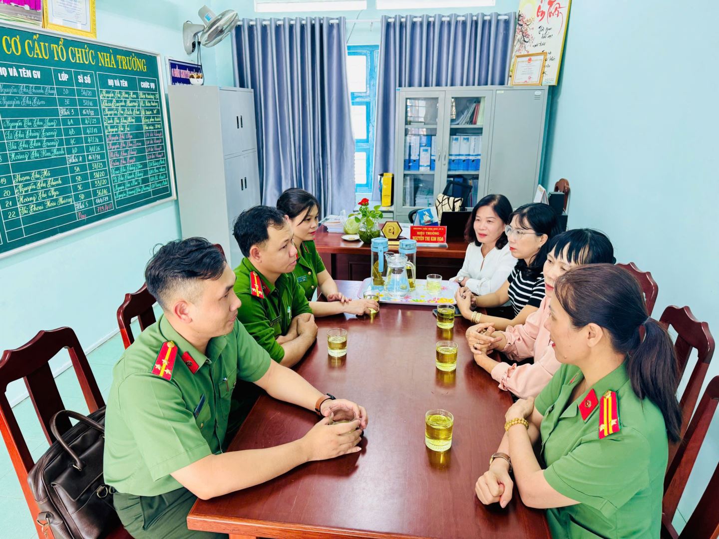 Đoàn gặp gỡ Ban Giám hiệu, giáo viên chủ nhiệm và các em học sinh lớp 5B, thăm hỏi tình hình sức khỏe của em Hào