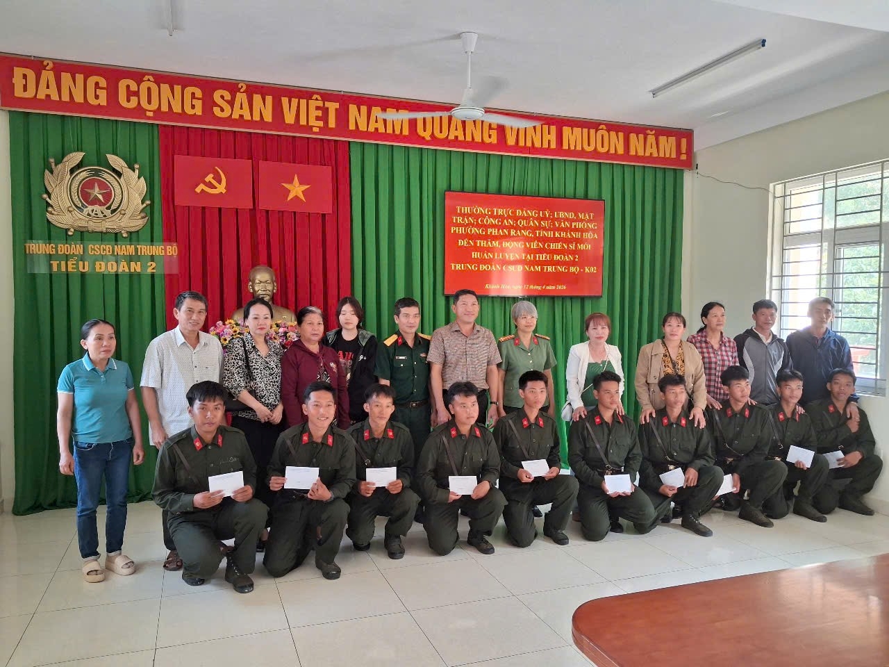 Trong không khí trang trọng, ấm áp nghĩa tình, đoàn công tác Công an phường đã trực tiếp gặp gỡ, thăm hỏi sức khỏe, nắm bắt tình hình sinh hoạt, học tập, rèn luyện của các chiến sĩ mới. Đại diện chỉ huy Công an phường ghi nhận, biểu dương tinh thần xung kích, trách nhiệm của các thanh niên đã hăng hái lên đường thực hiện nghĩa vụ thiêng liêng đối với Tổ quốc; đồng thời động viên các chiến sĩ nhanh chóng hòa nhập môi trường quân ngũ, chấp hành nghiêm kỷ luật, tích cực học tập, rèn luyện, phấn đấu trở thành những quân nhân ưu tú.