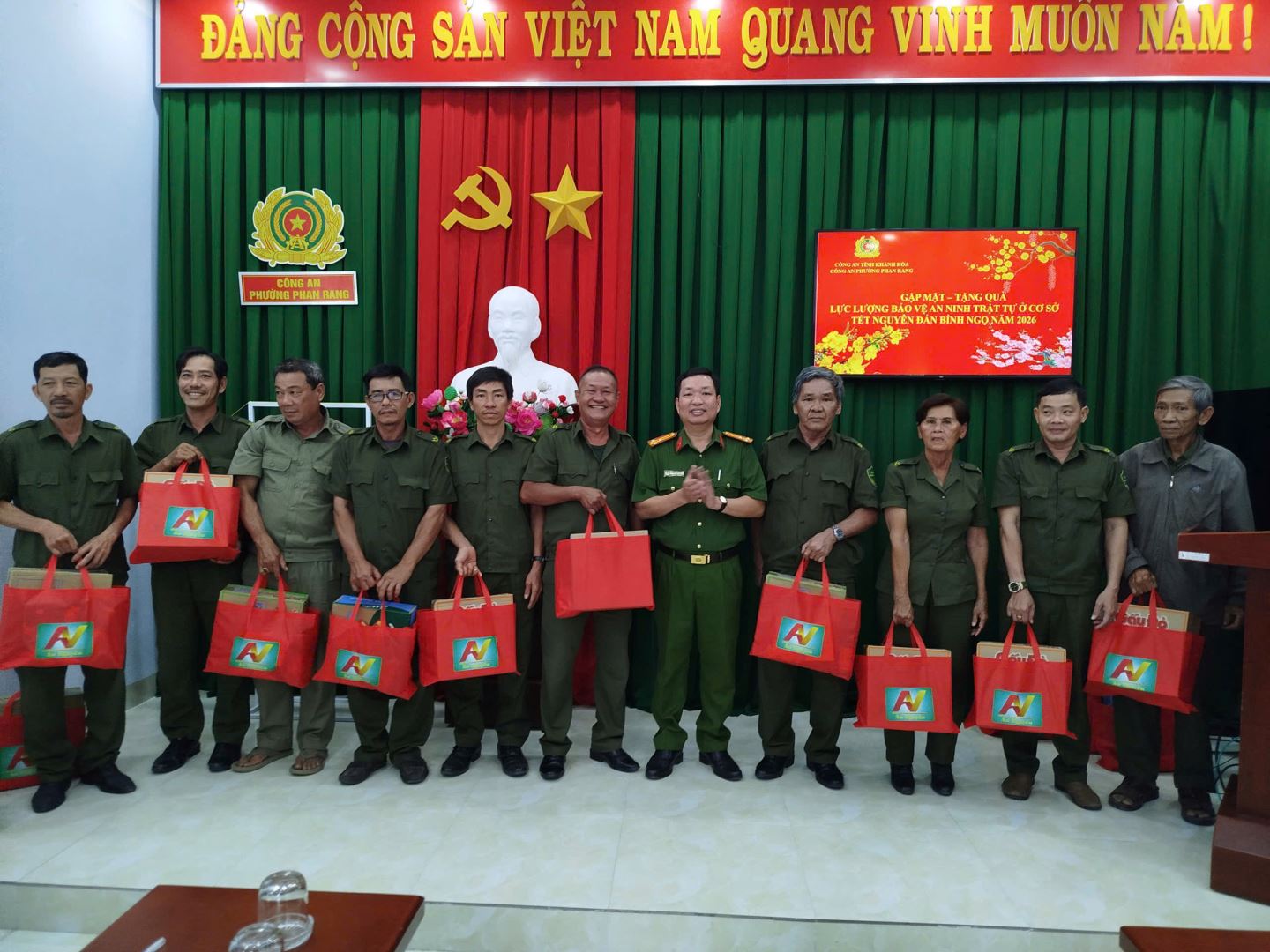 Nhân dịp Tết Nguyên đán Bính Ngọ 2026, Công an phường Phan Rang đã tổ chức gặp mặt, thăm hỏi và trao quà chúc Tết lực lượng tham gia bảo vệ an ninh trật tự (ANTT) ở cơ sở – những người luôn âm thầm góp sức giữ gìn bình yên địa bàn. Buổi gặp mặt diễn ra trong không khí thân tình, ấm áp, thể hiện sự quan tâm sâu sắc của lãnh đạo đơn vị đối với lực lượng nòng cốt tại cơ sở. Trong thời gian qua, lực lượng ANTT đã luôn tích cực hỗ trợ Công an phường trong công tác nắm tình hình, giải quyết vụ việc ngay từ ban đầu, tham gia tuần tra, tuyên truyền pháp luật và vận động Nhân dân chấp hành tốt quy định của pháp luật.