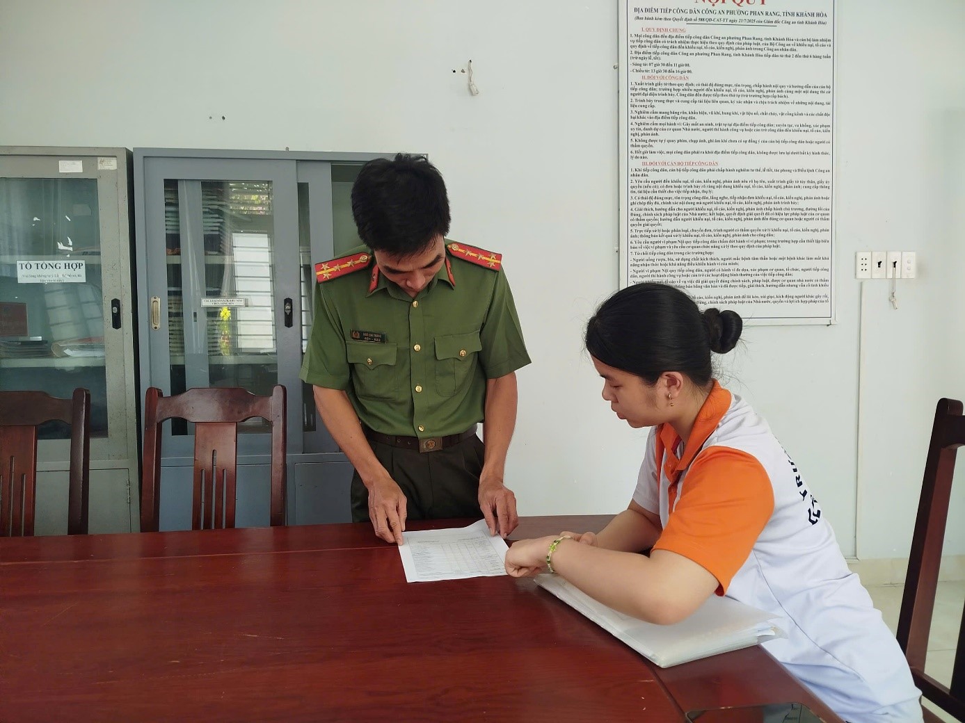 Cán bộ Công an phường Phan Rang hướng dẫn công dân đăng ký dự tuyển vào các trường CAND