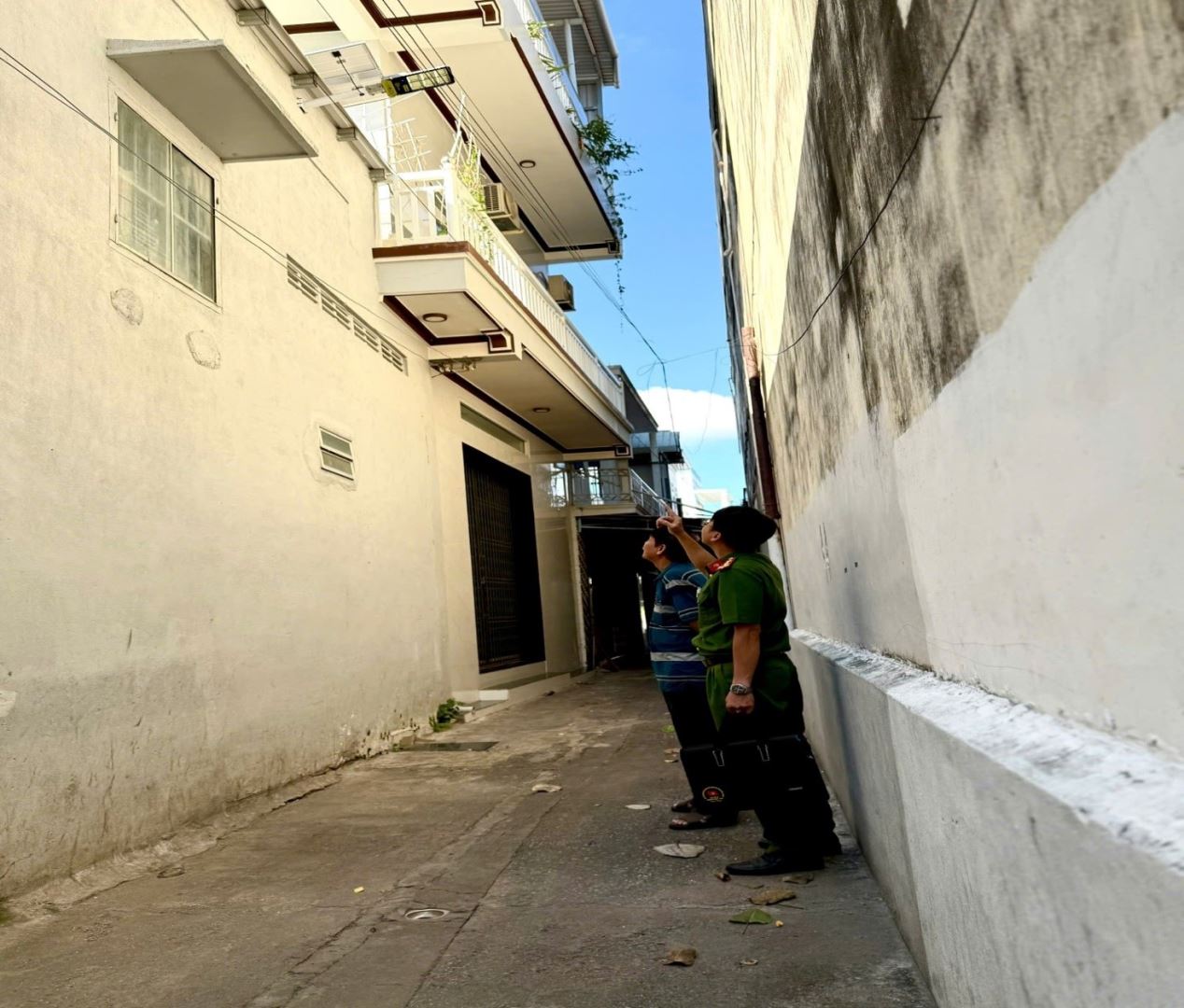 Cảnh sát khu vực phối hợp Tổ trưởng Tổ dân phố kiểm tra hoạt động của các đèn năng lượng mặt trời của mô hình “Ánh sáng bình yên”