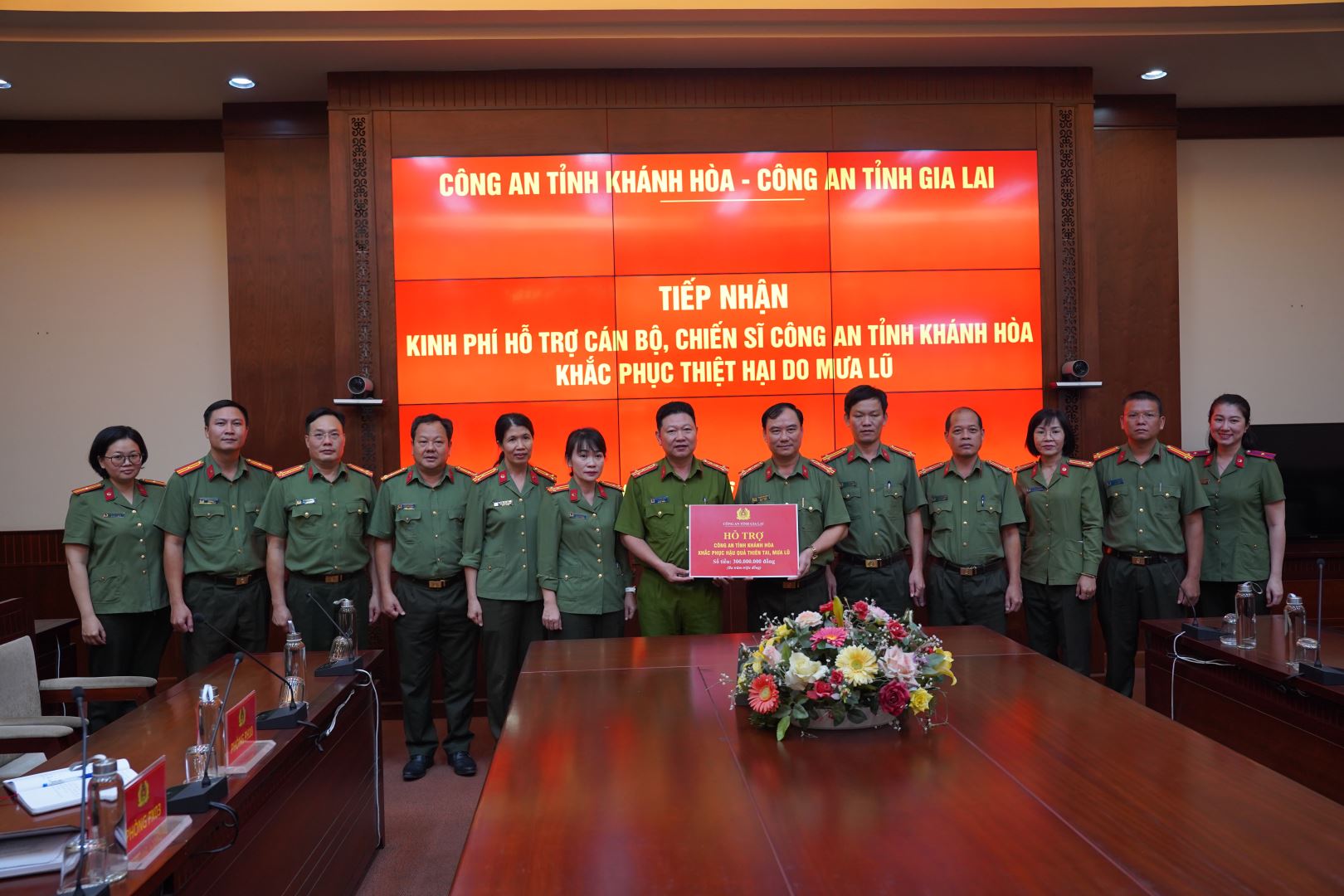 Công an tỉnh Gia Lai trao tặng 300 triệu đồng hỗ trợ Công an tỉnh Khánh Hòa khắc phục hậu quả mưa lũ