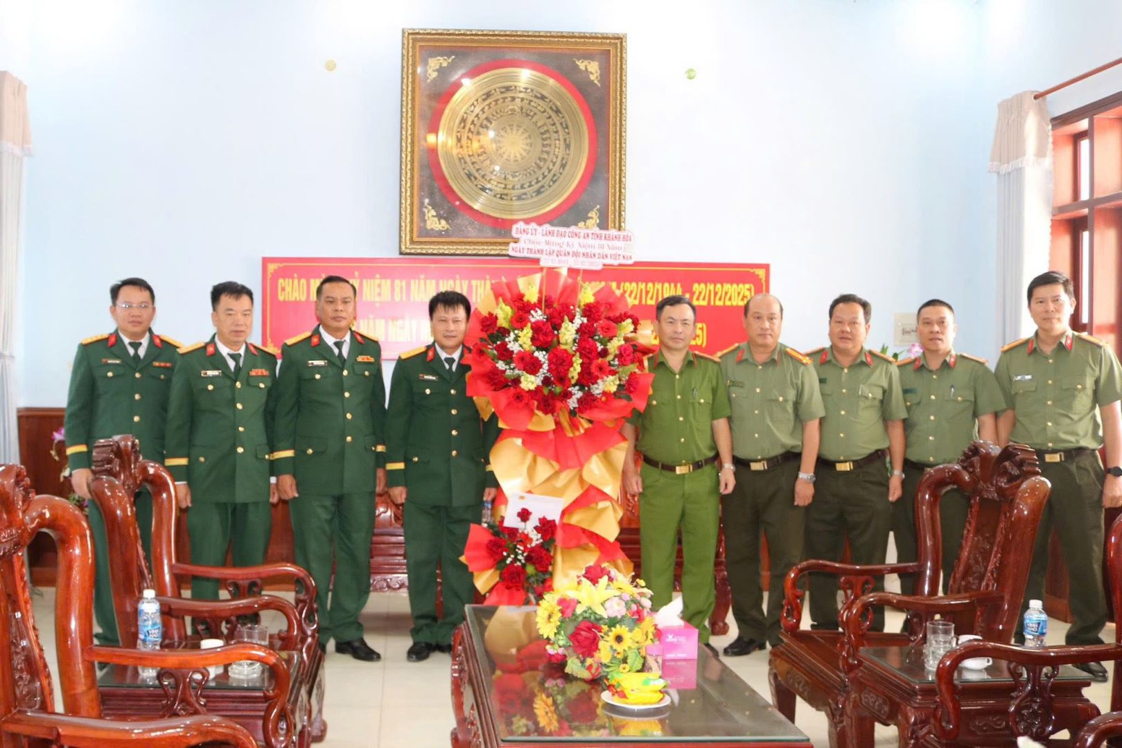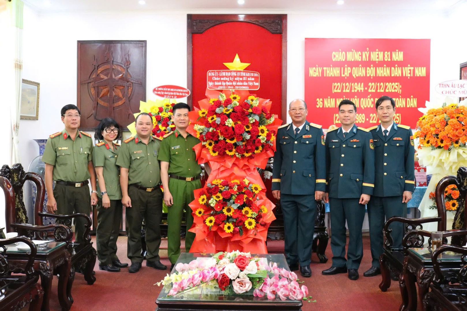 Nhân dịp kỷ niệm 81 năm Ngày thành lập Quân đội nhân dân Việt Nam (22/12/1944 - 22/12/2025) và 36 năm Ngày hội quốc phòng toàn dân (22/12/1989 - 22/12/2025), ngày 22/12, đoàn đại biểu Đảng uỷ, lãnh đạo Công an tỉnh đã đến thăm, tặng hoa và chúc mừng các đơn vị Quân đội đóng quân trên địa bàn.