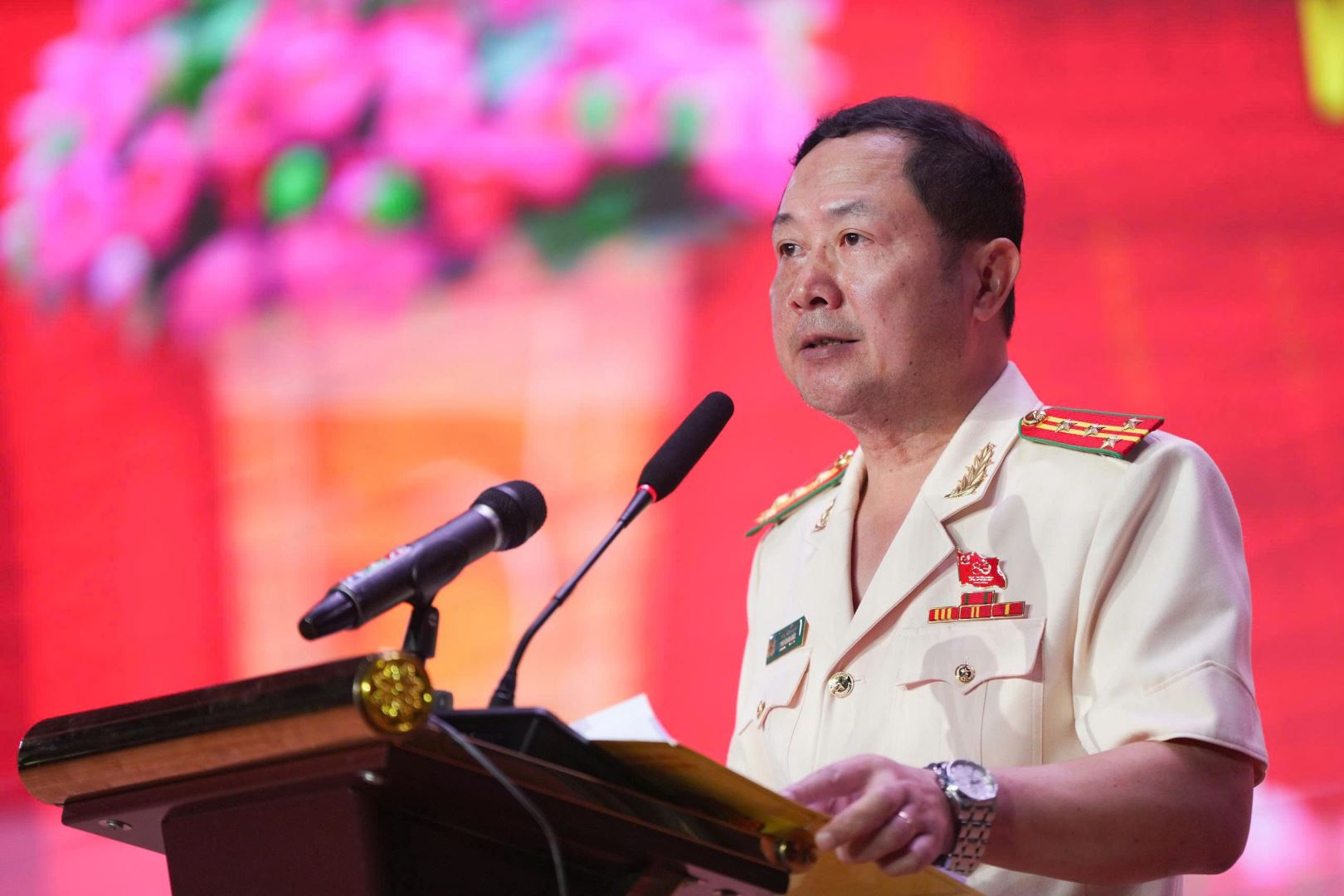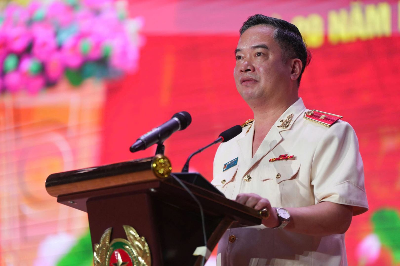 Thiếu tướng Nguyễn Hữu Phước, Bí thư Đảng ủy, Giám đốc Công an tỉnh đã đọc diễn văn ôn lại truyền thống 80 năm Ngày truyền thống CAND Việt Nam và 20 năm Ngày hội TDBVANTQ