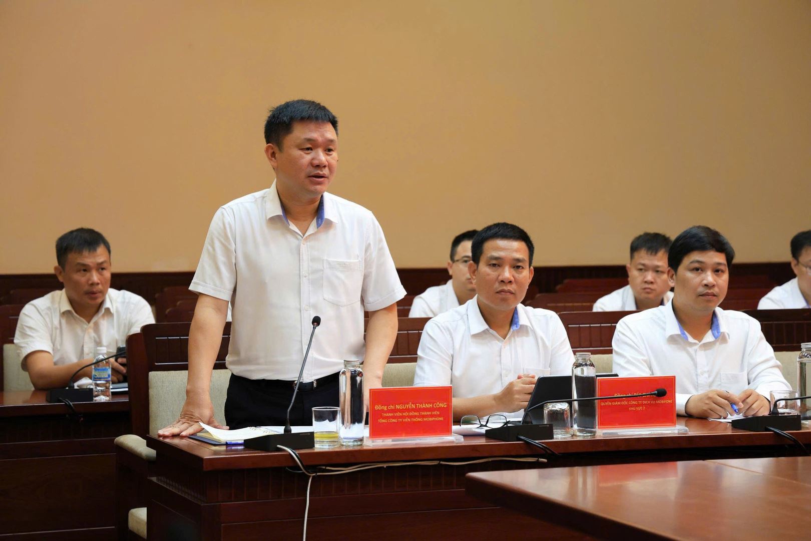 Ông Nguyễn Thành Công, Thành viên Hội đồng thành viên Tổng Công ty Viễn thông MobiFone phát biểu tại buổi làm việc.