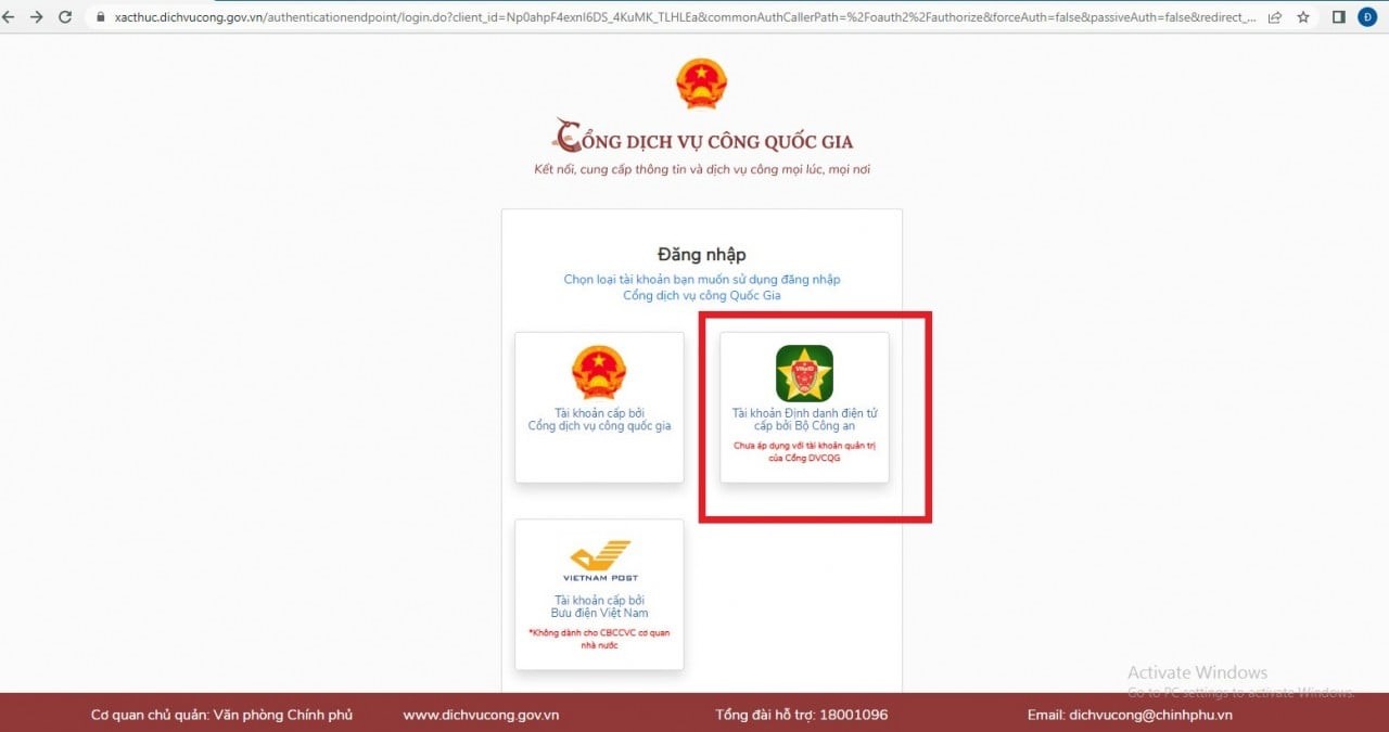 Đăng nhập Cổng dịch vụ công quốc gia qua tài khoản VNeID để đăng ký dịch vụ công về Căn cước