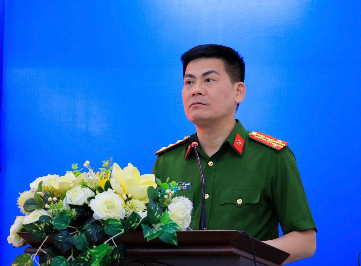 Đại tá Nguyễn Bá Thành - Ủy viên Ban Thường vụ Đảng ủy, Phó Giám đốc, Thủ trưởng Cơ quan Cảnh sát điều tra Công an tỉnh phát biểu tại buổi giao ban.