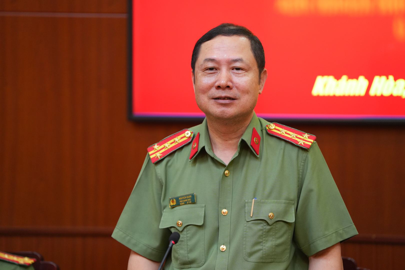 Đại tá Nguyễn Quân – Phó Giám đốc Công an tỉnh Khánh Hòa cảm ơn sự quan tâm hỗ trợ của Công an tỉnh Tuyên Quang đối với cán bộ, chiến sĩ và nhân dân tỉnh Khánh Hòa.
