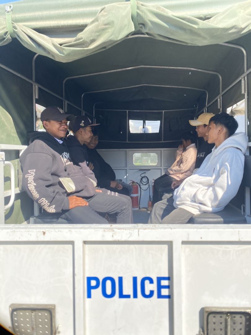 Công an xã hỗ trợ đưa các em học sinh đến địa điểm làm Căn cước