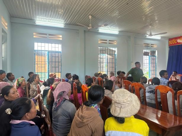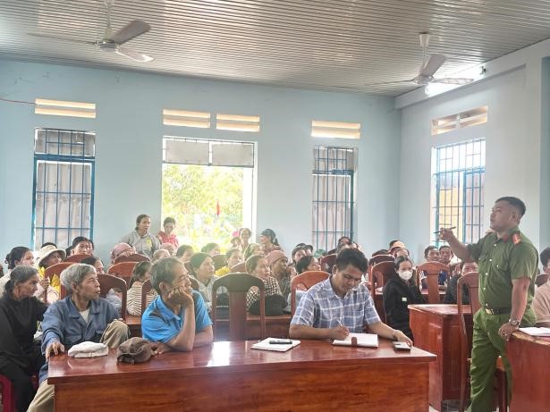 | Công an xã tuyên truyền pháp luật tại buổi họp dân |