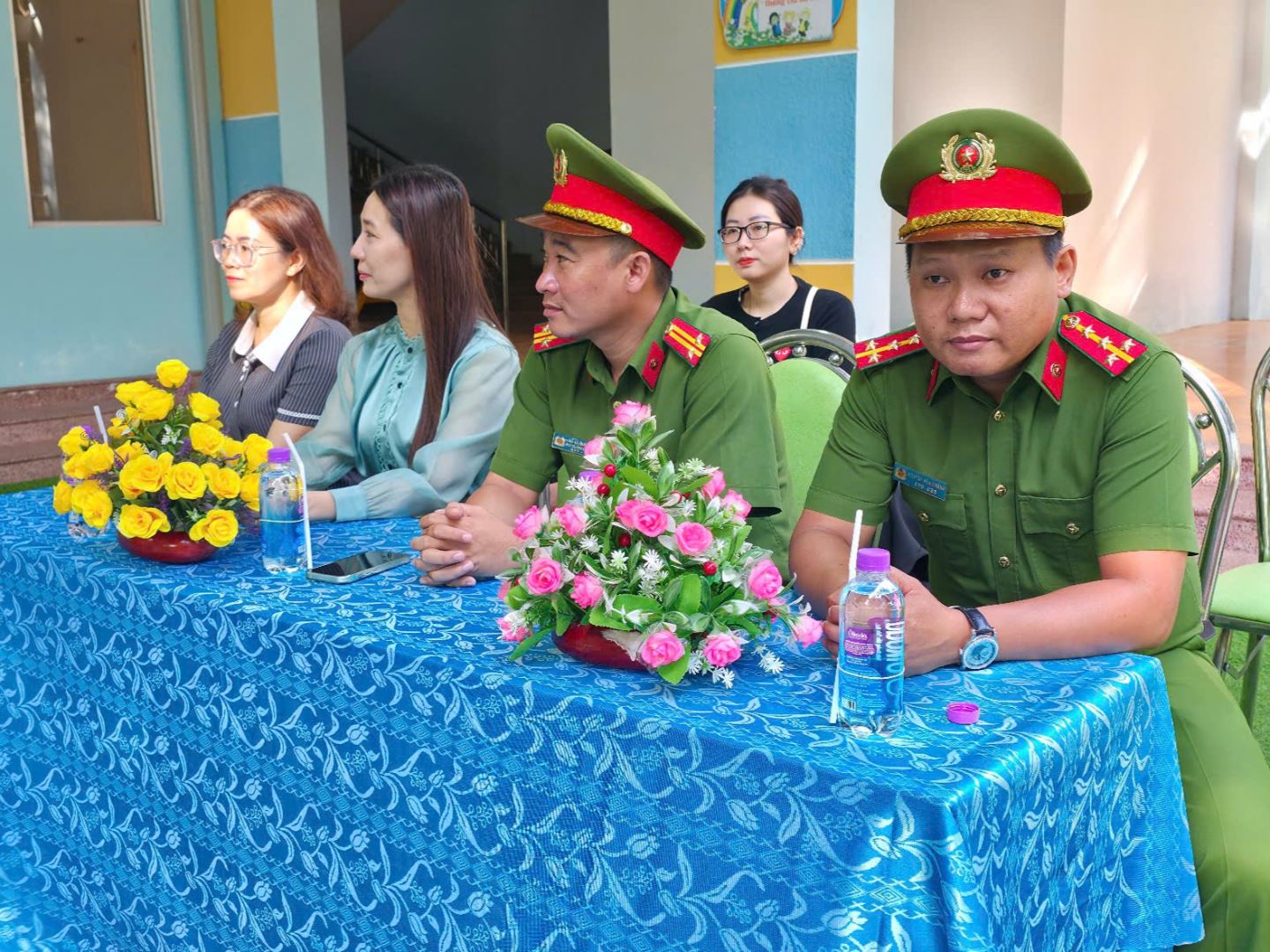 Chỉ huy, cán bộ CAX Diên Lâm cùng BGH trường Mầm non Diên Lâm