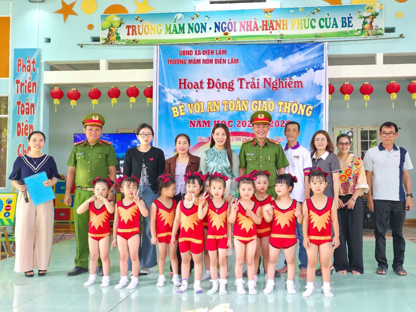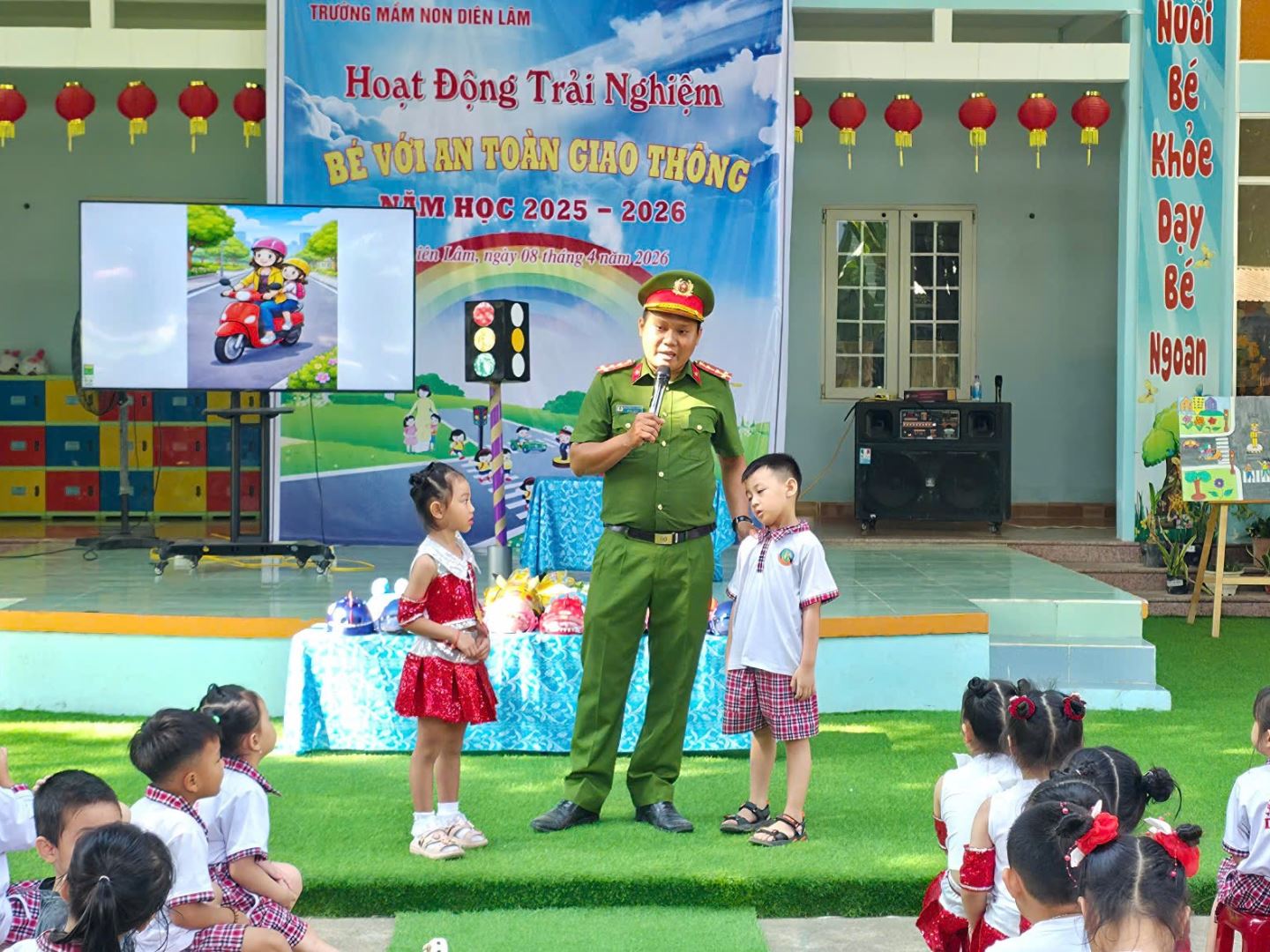 Sáng ngày 08/04/2026, tại Trường Mầm non Diên Lâm, Công an xã Diên Lâm đã tổ chức tổ chức hoạt động trải nghiệm "Bé với an toàn giao thông".