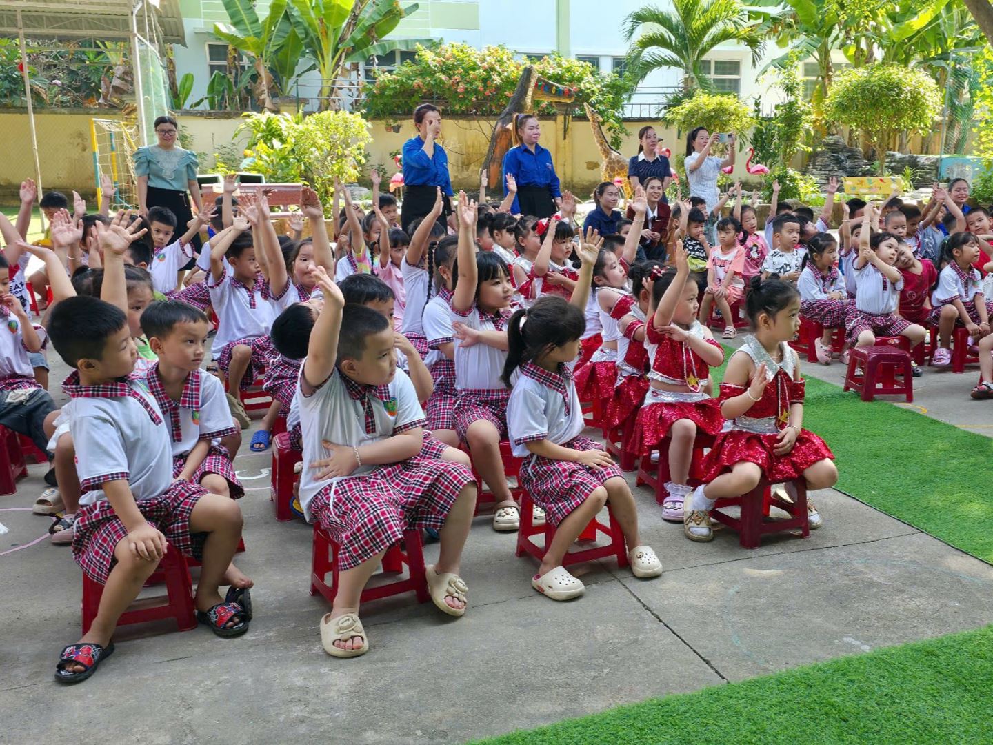 Các bạn nhỏ Mầm non Diên Lâm tham gia trả lời câu hỏi của các chú Công an