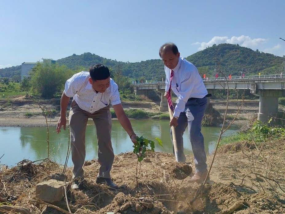 | Lãnh đạo Đảng ủy, chính quyền xã Diên Lâm tham gia trồng cây hưởng ứng Lễ phát động |