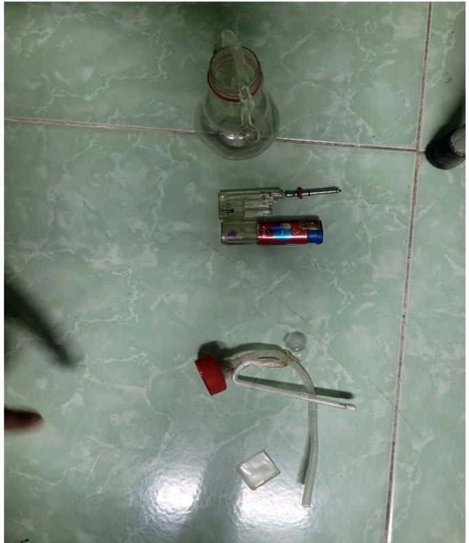 Xét thấy vụ việc có dấu hiệu của tội Tổ chức sử dụng trái phép chất ma túy, Công an xã Ninh Phước đã báo cáo Phòng Cảnh sát điều tra tội phạm về ma túy, Công an tỉnh Khánh Hòa phối hợp, tiếp nhận vụ việc đồng thời khám xét khẩn cấp chỗ ở của Nguyễn Đức Thành phát hiện và thu giữ một bộ dụng cụ sử dụng ma túy, một gói nhựa bị cắt một đầu, bên trong dính tinh thể màu trắng nghi là ma túy.