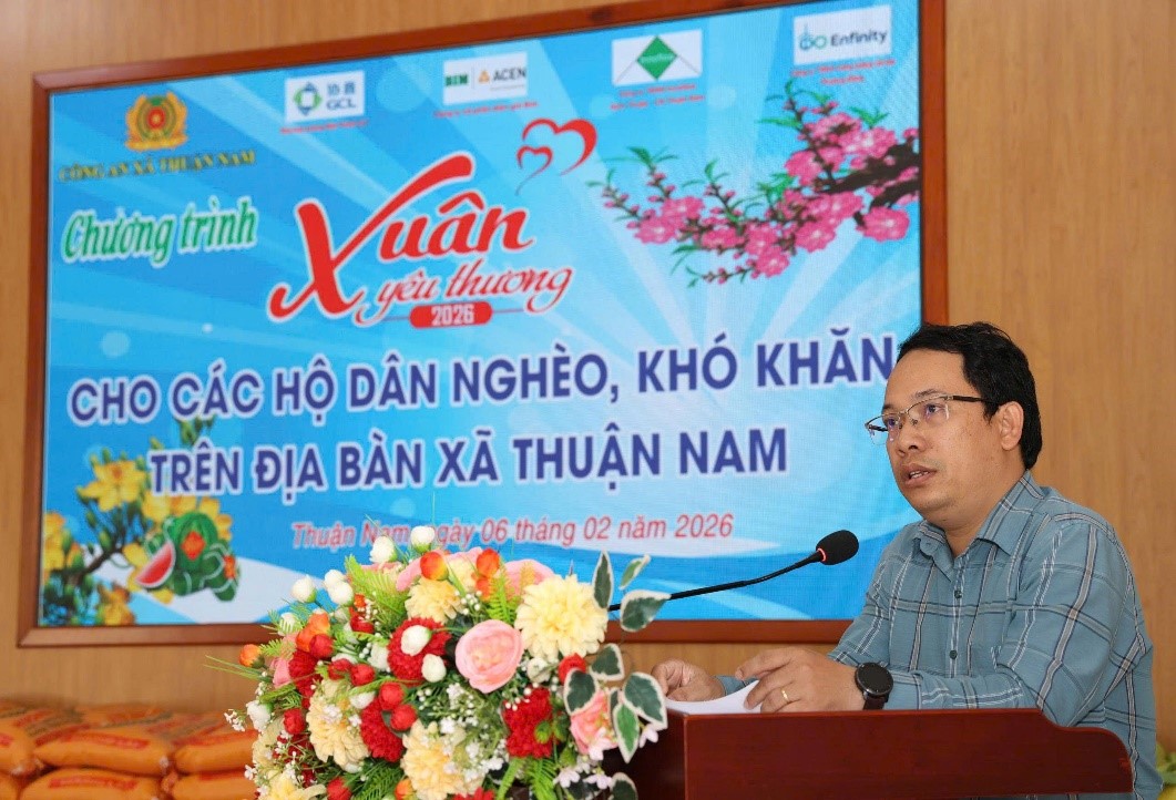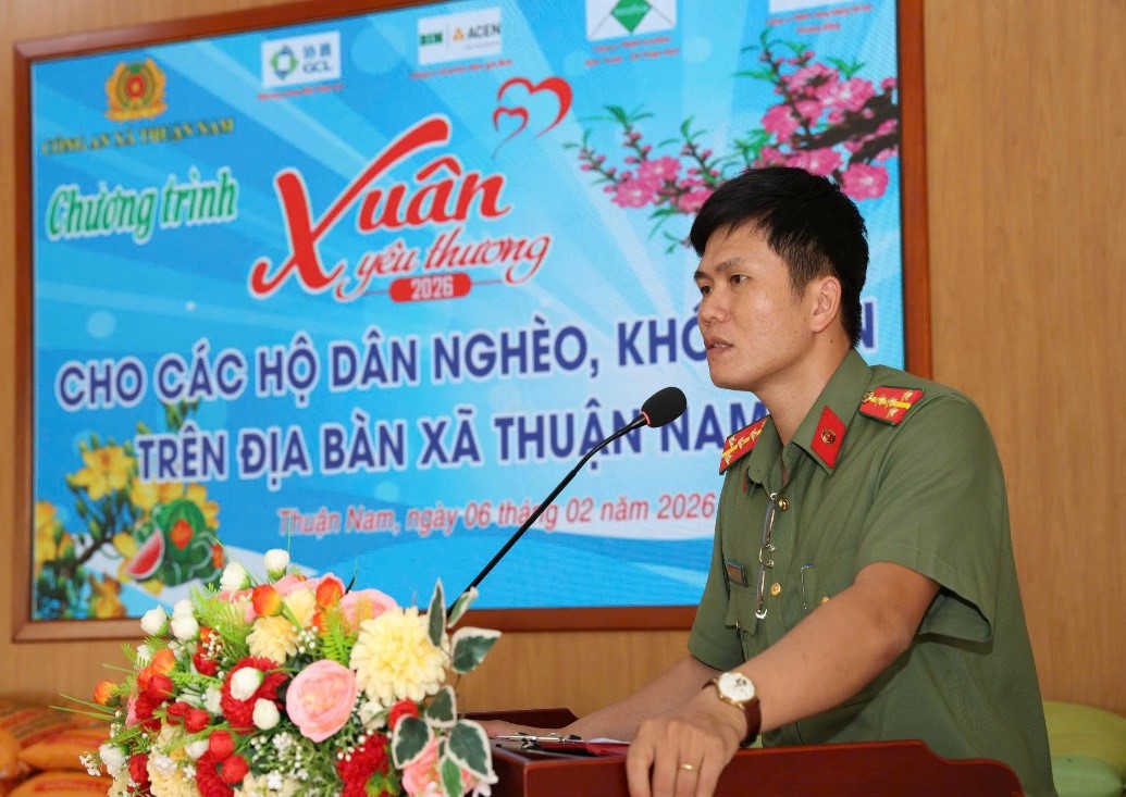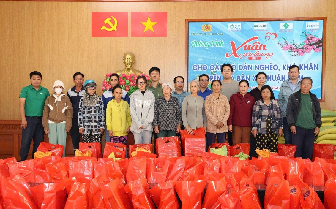 Với tinh thần tương thân tương ái và mong muốn sẻ chia phần nào khó khăn cùng bà con nhân dân, Công an xã Thuận Nam phối hợp với các đơn vị Công ty Cổ phần điện gió Bim, Công ty TNHH Năng lượng tái tạo Phương Đông, Nhà máy phong điện Power số 1, Công ty TNHH Innoflow Ninh Thuận – Chi nhánh Thuận Nam tổ chức chương trình Xuân yêu thương năm 2026, phát 180 suất quà trị giá hơn 60 triệu đồng cho các hộ cận nghèo và khó khăn trên địa bàn xã.