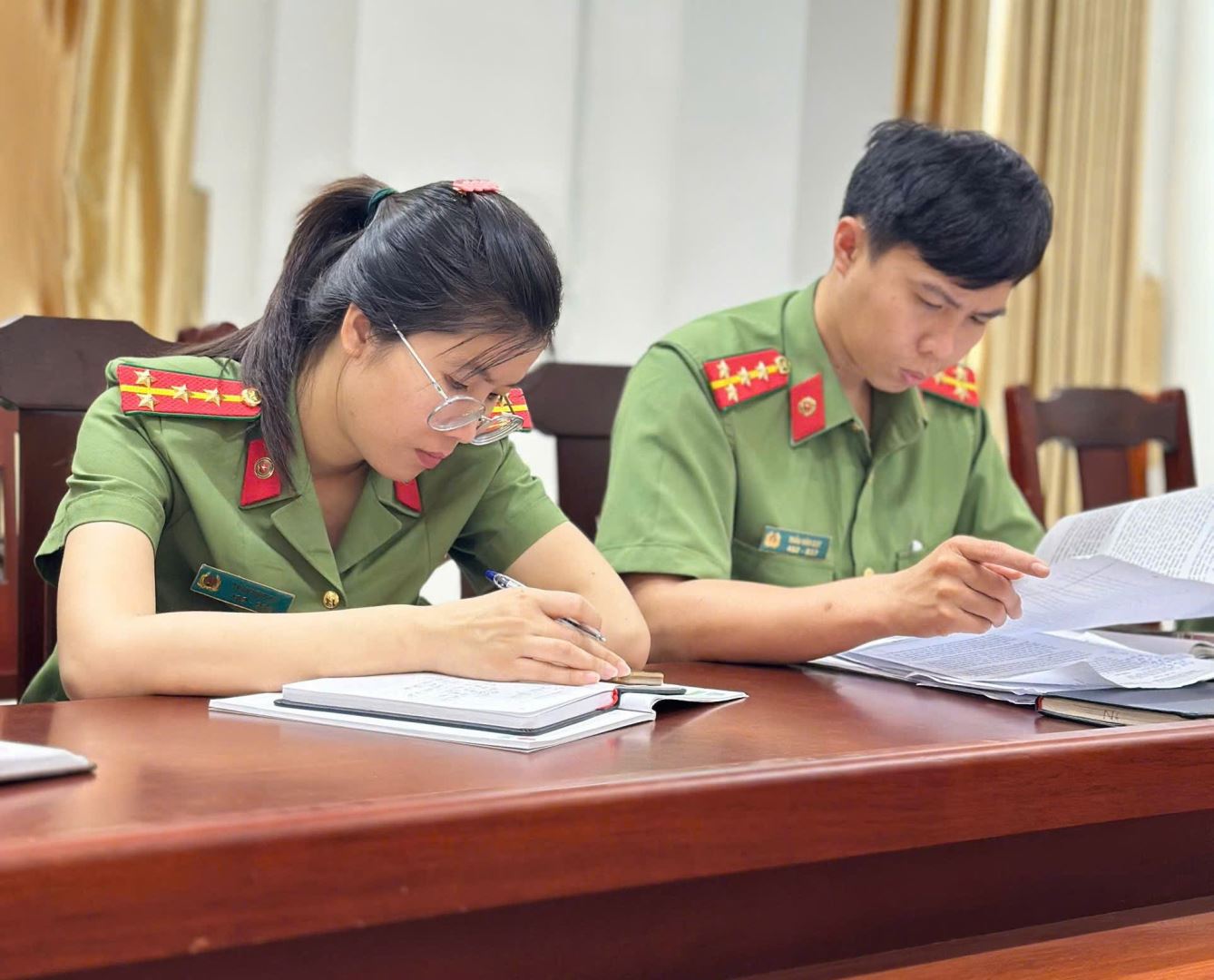 Cán bộ, chiến sĩ Công an xã nghiên cứu, trao đổi và tham luận tại Hội nghị